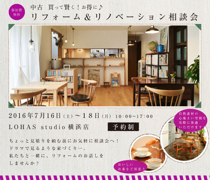 LOHAS studio 練馬店にて、1/17(土)-1/18(日)の2日間、[予約制]リフォーム&リノベーション無料個別相談会を開催致します。中古を買って賢く!お得に♪ ちょっと見積りを頼む前にお気軽に相談会へ! ドラマで見るような家づくり・・・。私たちと一緒に、リフォームのお話をしませんか?
