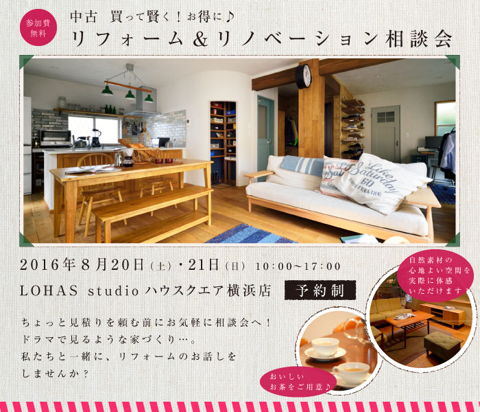 | 会場 | LOHAS studio ハウスクエア横浜店: 神奈川県横浜市都筑区中川1-4-1 ハウスクエア横浜2F |