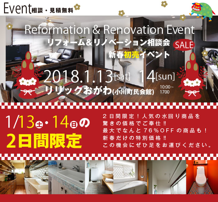 新春初売イベント リフォーム&リノベーション相談会 in リリックおがわ(小川町民会館) 【お問い合わせ】0120-19-5955