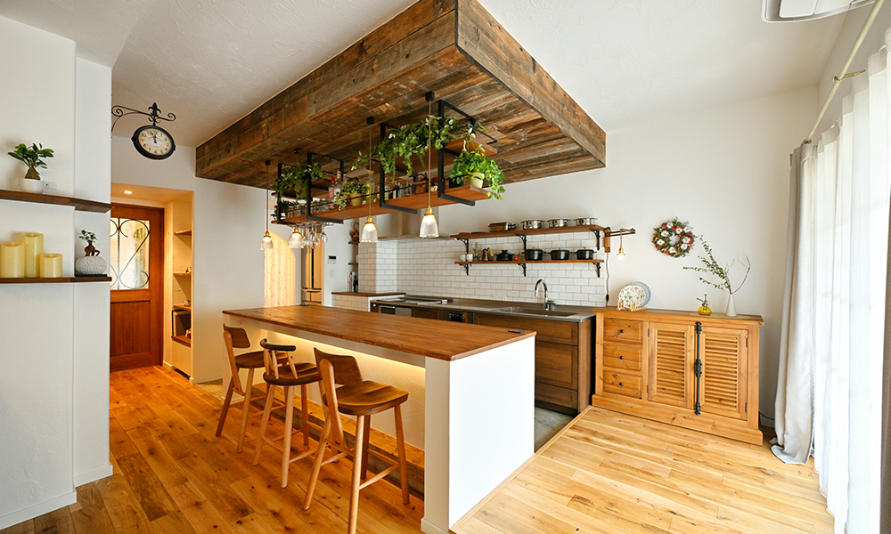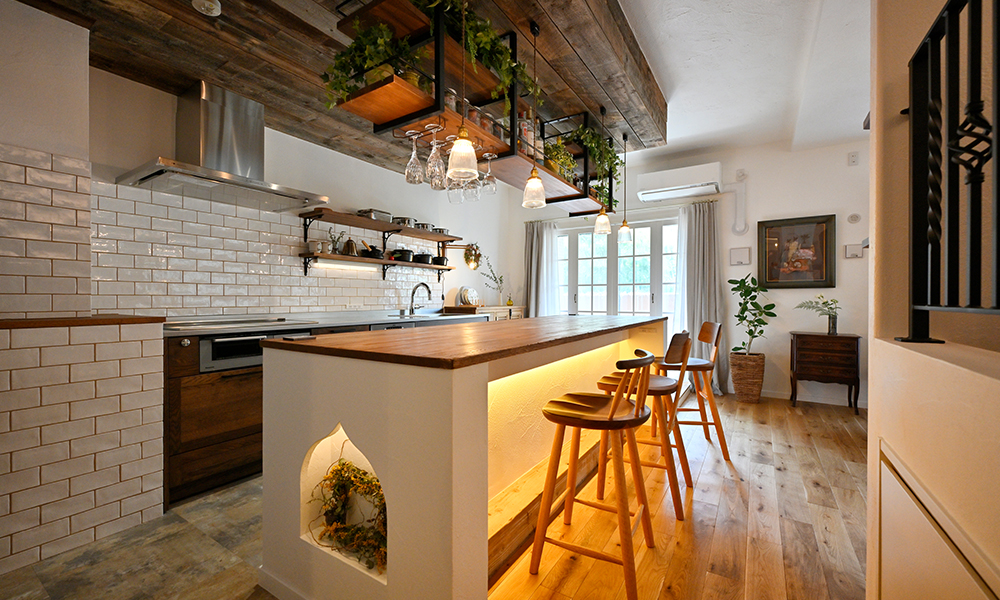 ・昼はカフェ、夜はバーのようなダイニングテーブル兼アイランドカウンター