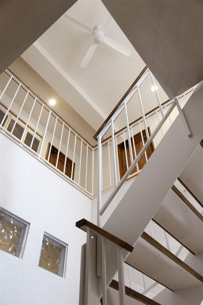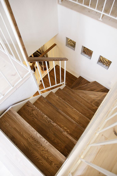 そこで、リビングの中心に階段を設けることで2階の採光を1階まで取り込むことに。