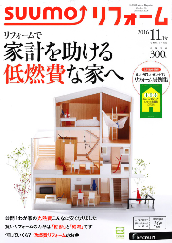 2016年9月16日発売の「SUUMOリフォーム 2016年11月号(リクルート社)」で、LOHAS studioの事例が紹介されました。 今回のSUUMOリフォームは「『家計を助ける低…