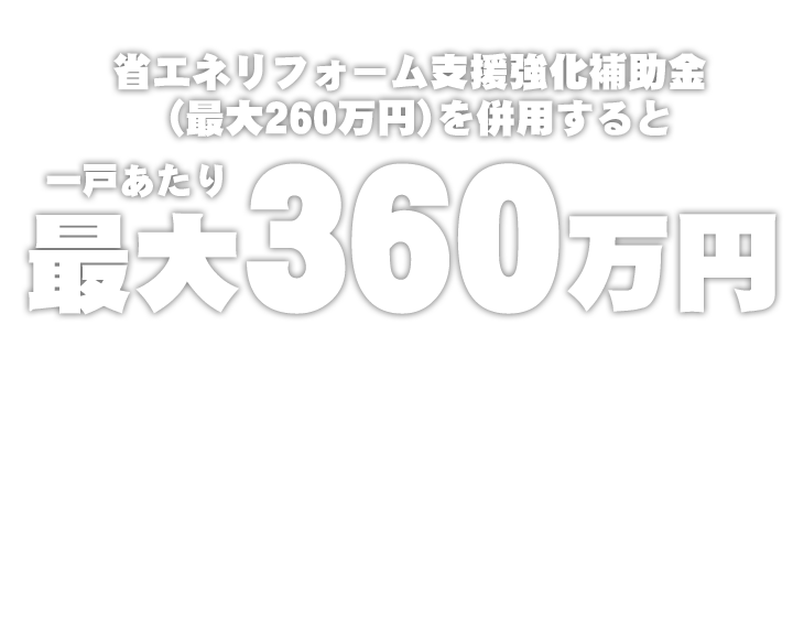 ・弊社のキャンペーンとの併用はできません。(省エネリフォーム支援強化補助金との併用は可)