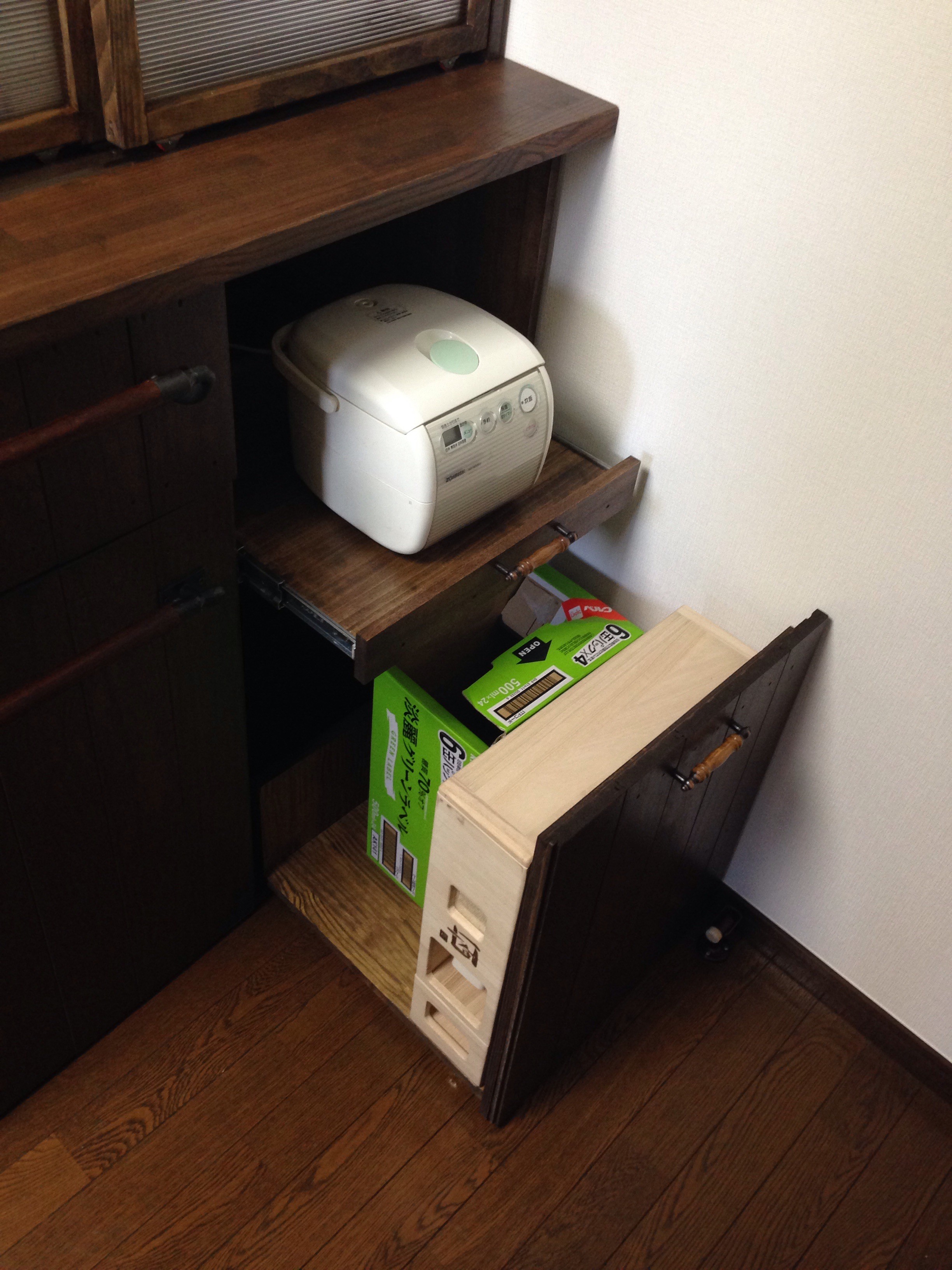 下部は、野菜入れ・米びつ等を収納するキャスター付きワゴン♪