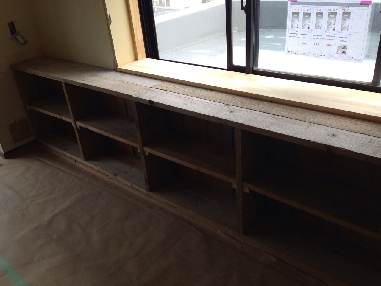足場板を使った造作本棚