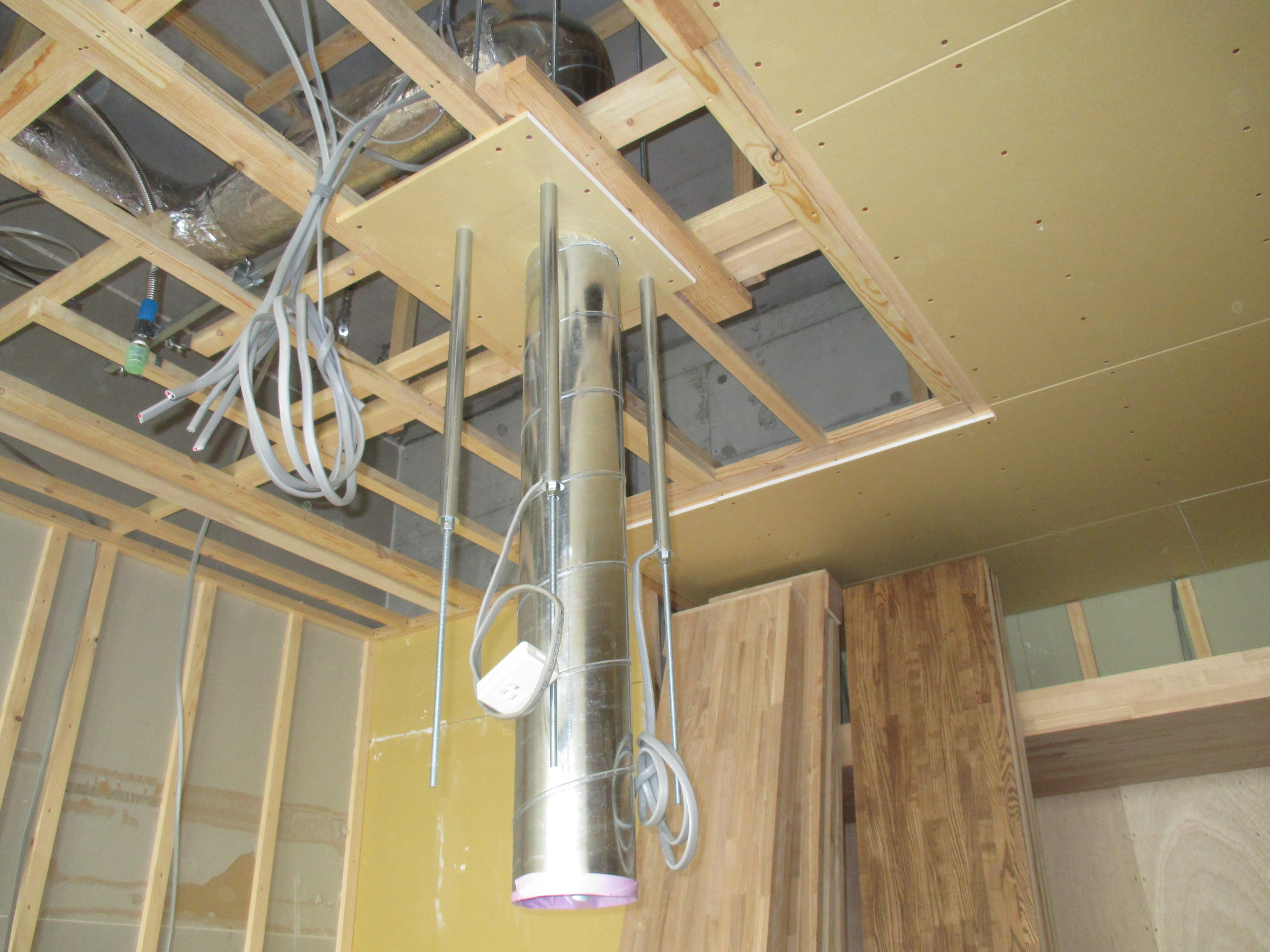 オープンキッチンのレンジフードのダクトと吊ボルトです。