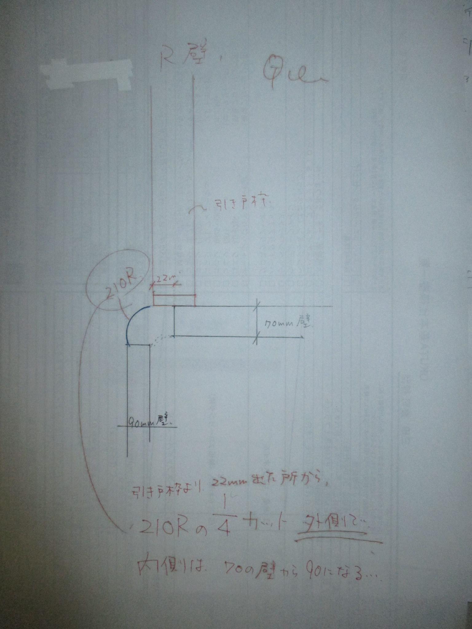 大抵は現場で造作しますが、この急な内側のRは現場では作れず・・・
