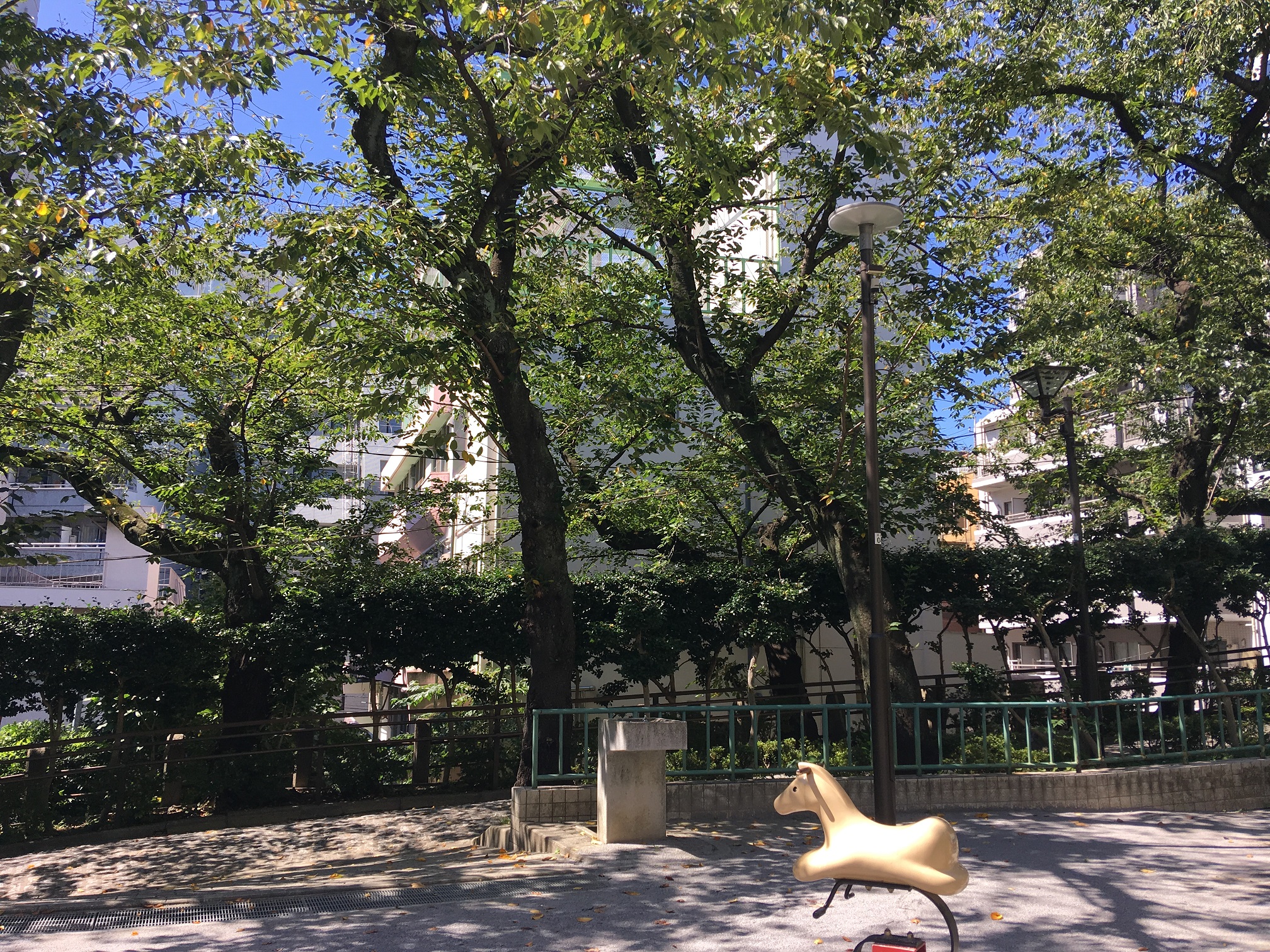 秋晴れのコンクリートジャングルの中のちょっとした公園。