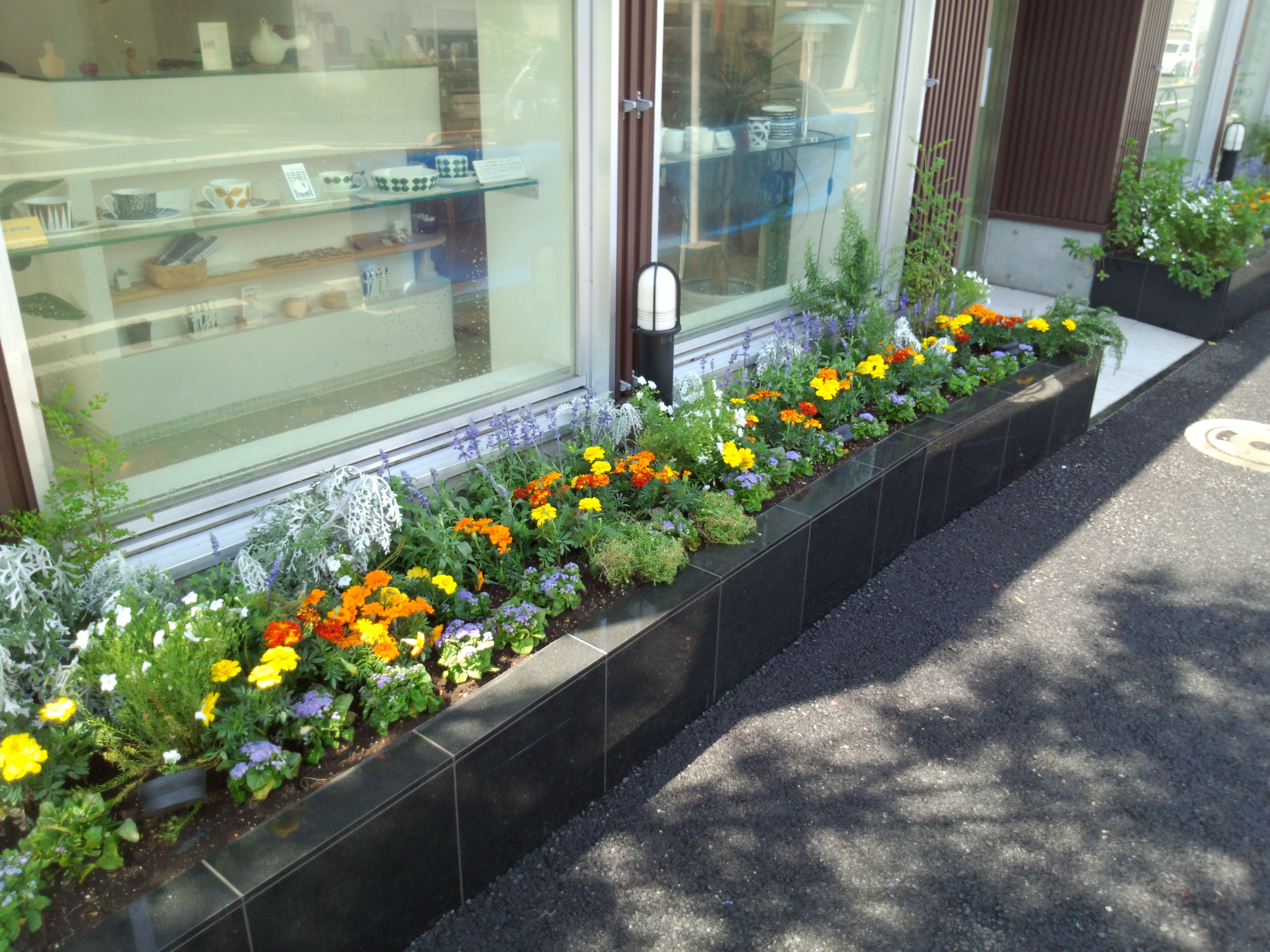 炎天下の中社員総出でstudioの花壇を植え替えました。 暑かったけど道行く人も植え替えた事に気づいてくれてます。 やっぱり花は良いですね。