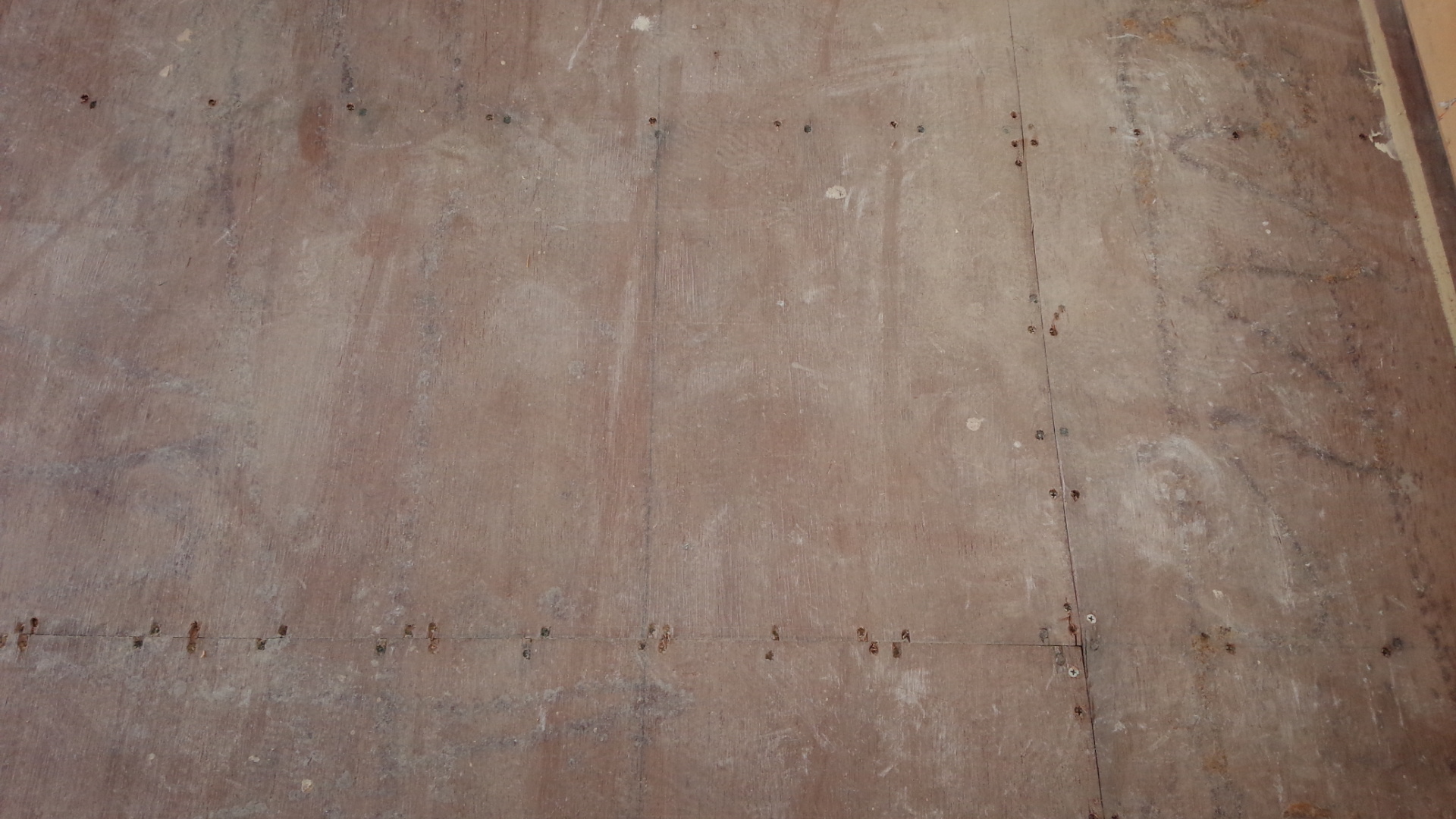 ツーバイフォーのお家のリフォーム 既存床下地 この釘がキュッキュなる原因ですね。 新たに全部ビスを打ち直し 新たにフローリングを貼ります!! 何事も下地処理が大事です。