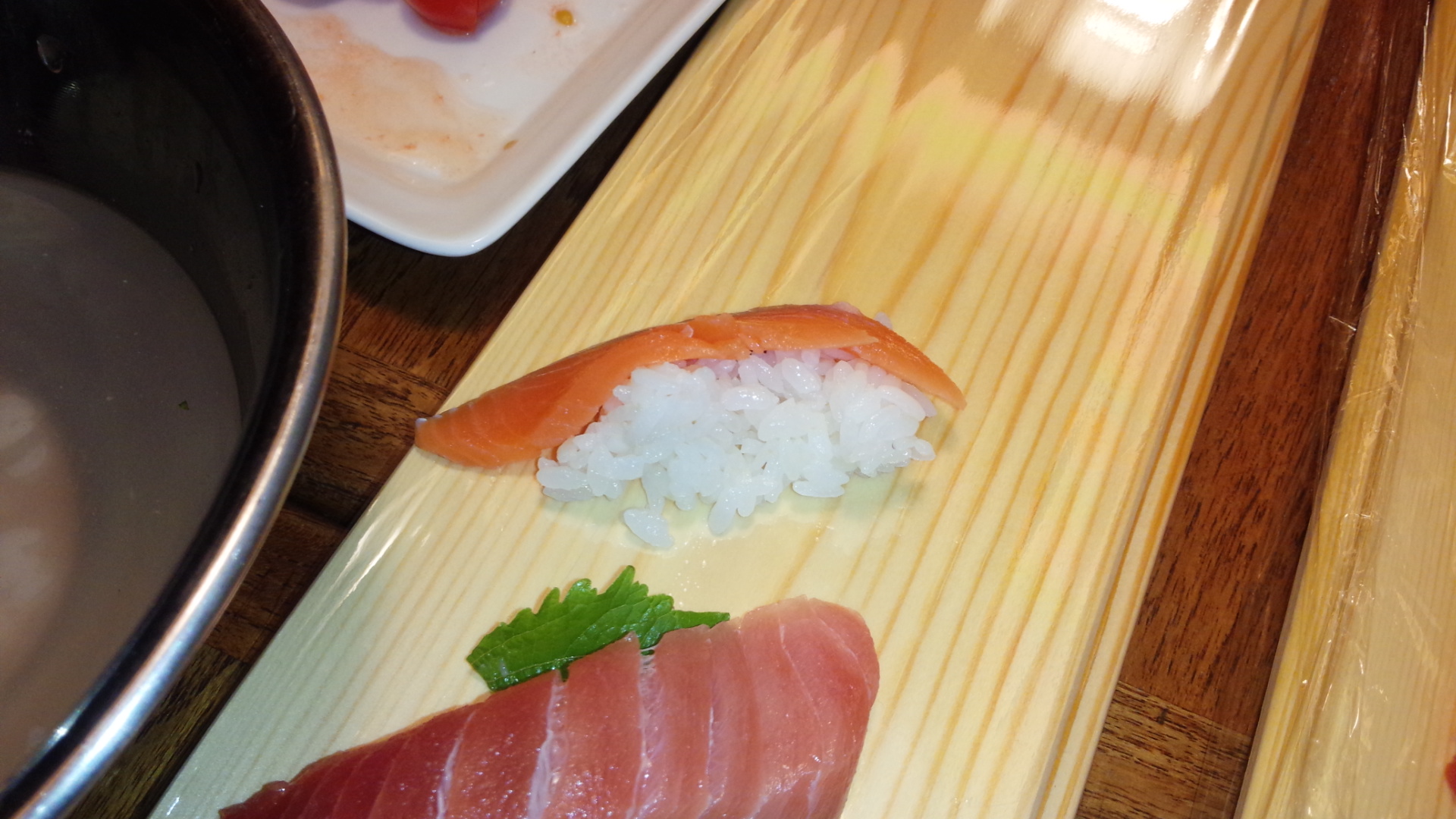 先日は事務所で歓送迎会。 元板前の社員が腕をふるいました。 おいしかったです。 これはうちの施工監理がにぎりました。 何事も下積みが必要です。