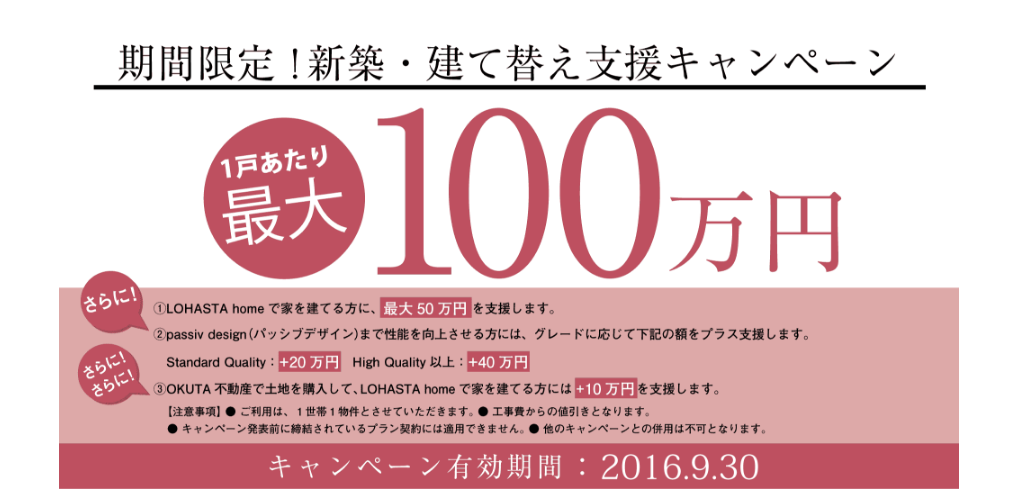 【一戸あたり最大100万円支援!新築・建て替え支援キャンペーン開催中】