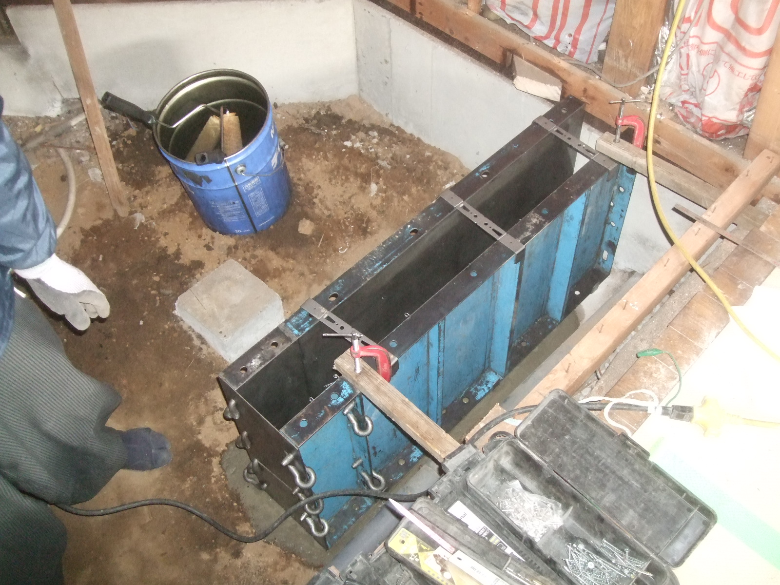 今日はリフォームにおいて新規に耐力壁を造る部分の基礎工事をしています。 何事も基礎からです。