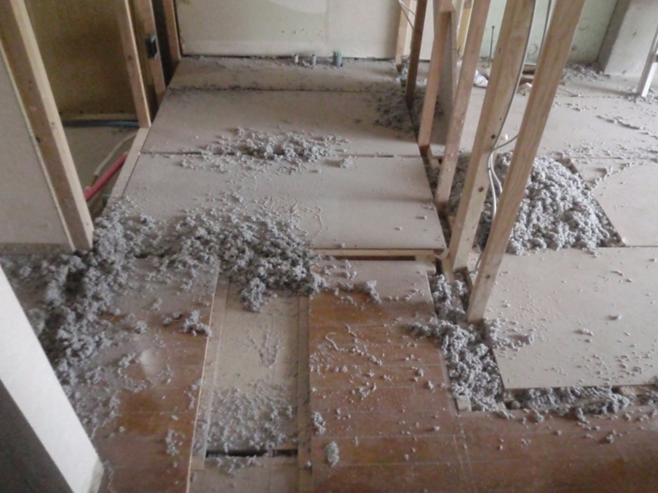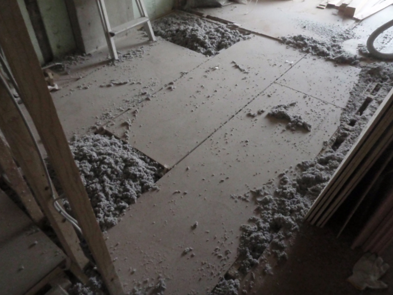 1Fの足元が寒いので、床下断熱としてセルロースファーバーを吹き込んでいます。