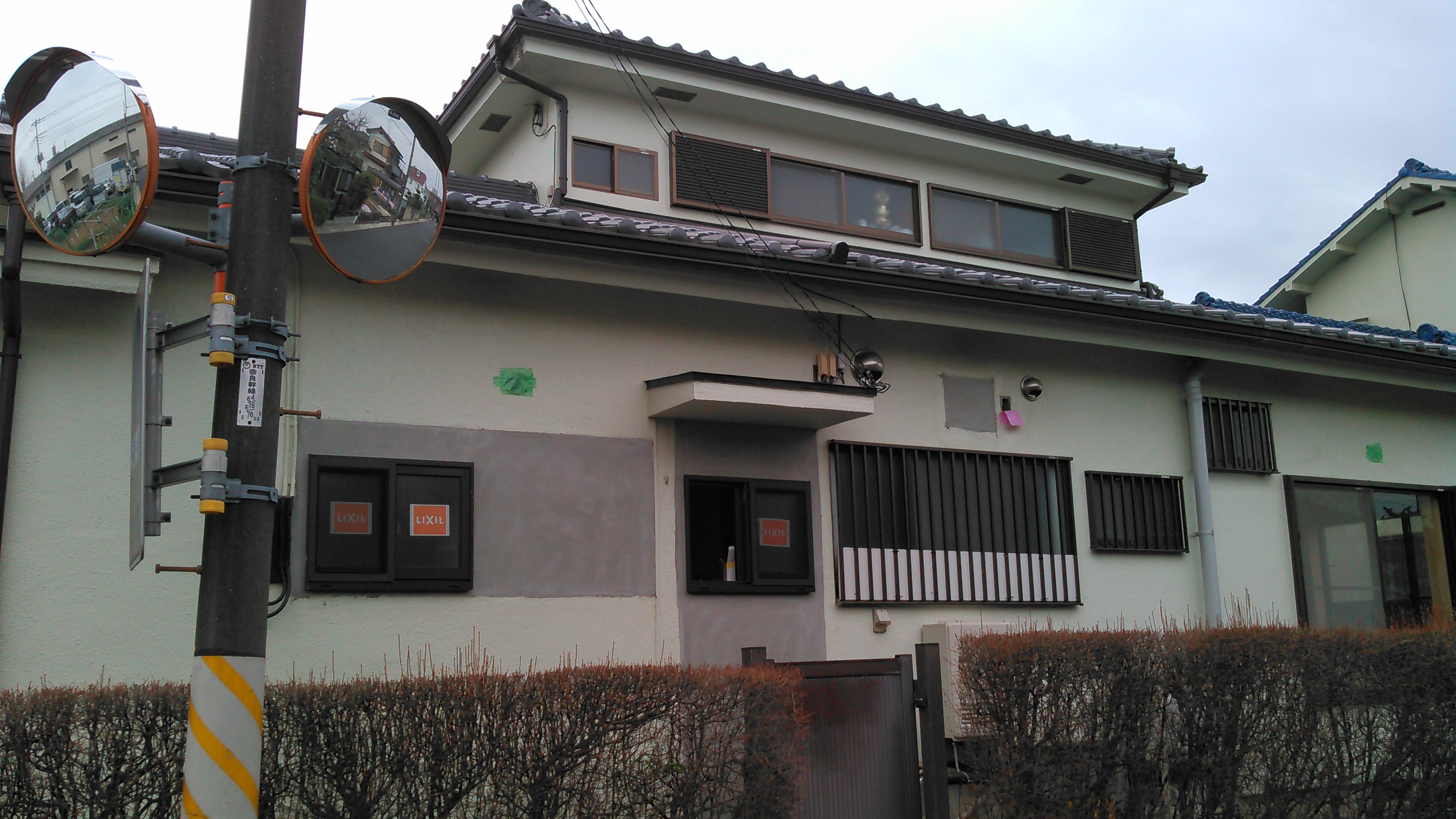 ↑写真、少しわかりにくいですが・・・勝手口や講師の取りついている窓がありました。