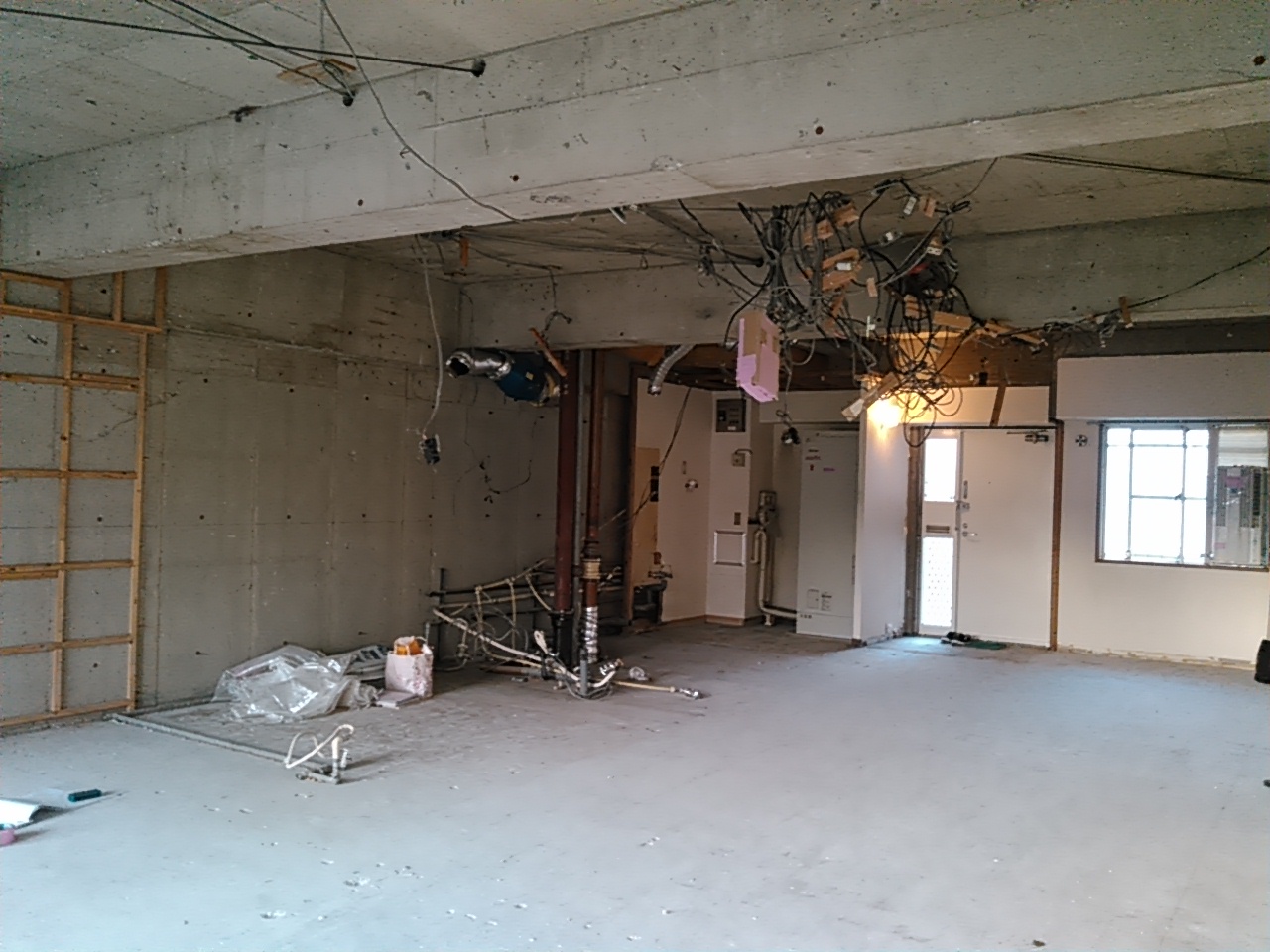 先日よりマンションのリフォーム工事が始まりました。 今回の案件は、中古を購入されたお施主様より頂きました工事になります。 まずは外壁部分を残して解体を行いました。 これから設備配管や電気配線の工事を進めて参ります。