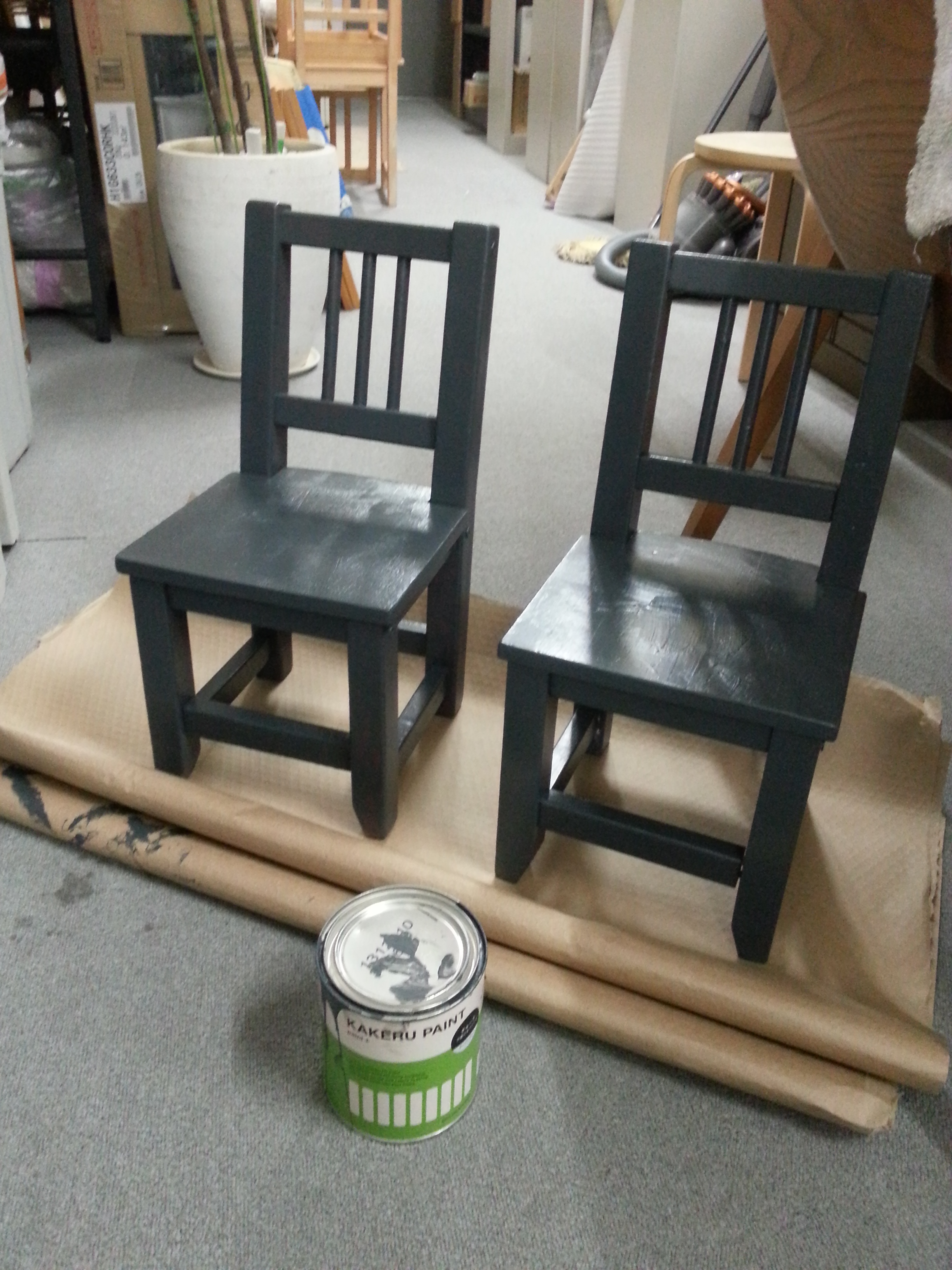 先日、Y様のお子様のNちゃんと一緒に、お持ちの子供用の椅子に塗装をしました。