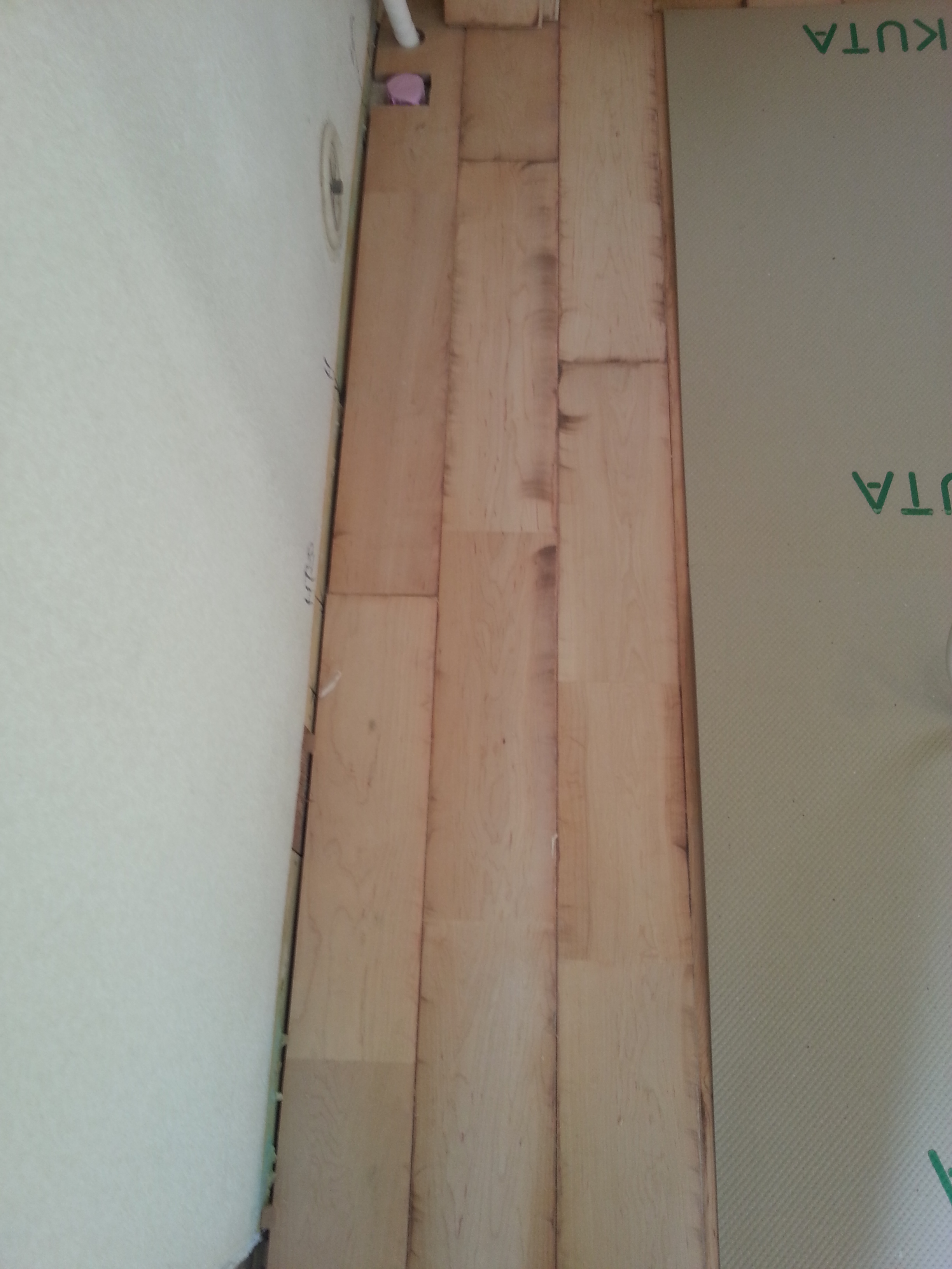 本日、フローリング貼り工事を施工しました! 樹種はメープル(楓)にアンティーク加工を施したものです。