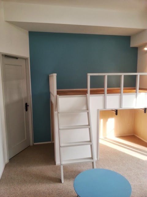 本日、お引渡しを行ってきました。 洋室の壁紙上に塗装をし、アクセントをつけました。 お客様のご用意していたテーブルも同じ色に仕上げ、調和ががとれました!