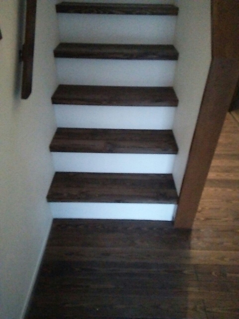踏面(フミズラ)階段の足が乗るところに無垢のフローリングを貼りました。