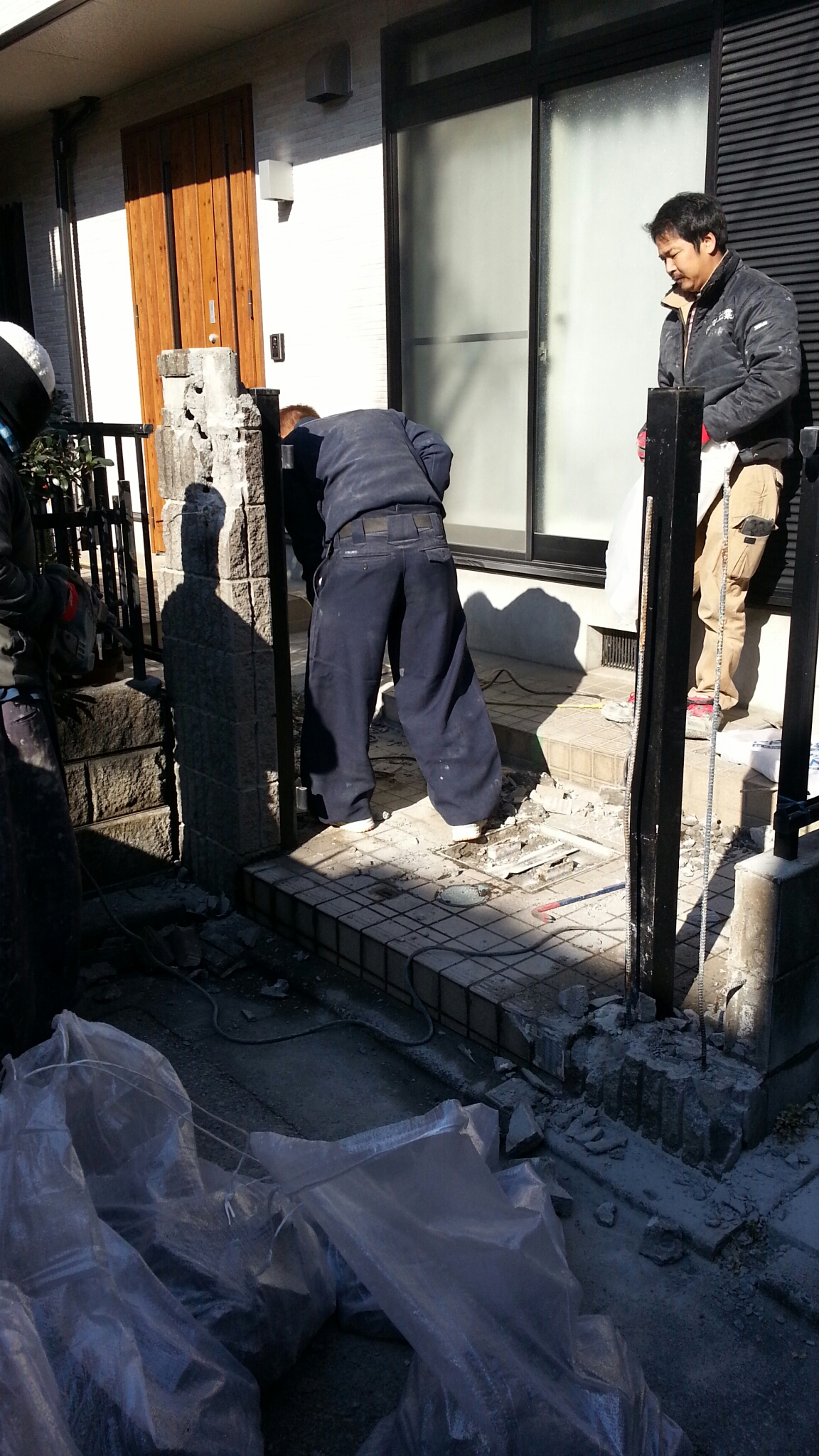 本日より外構工事が始まりました。 まずは解体です。 その後、階段などを造作していきます。