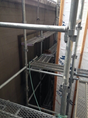 足場に、珍しいご近所様が、家を建てて出産しました。