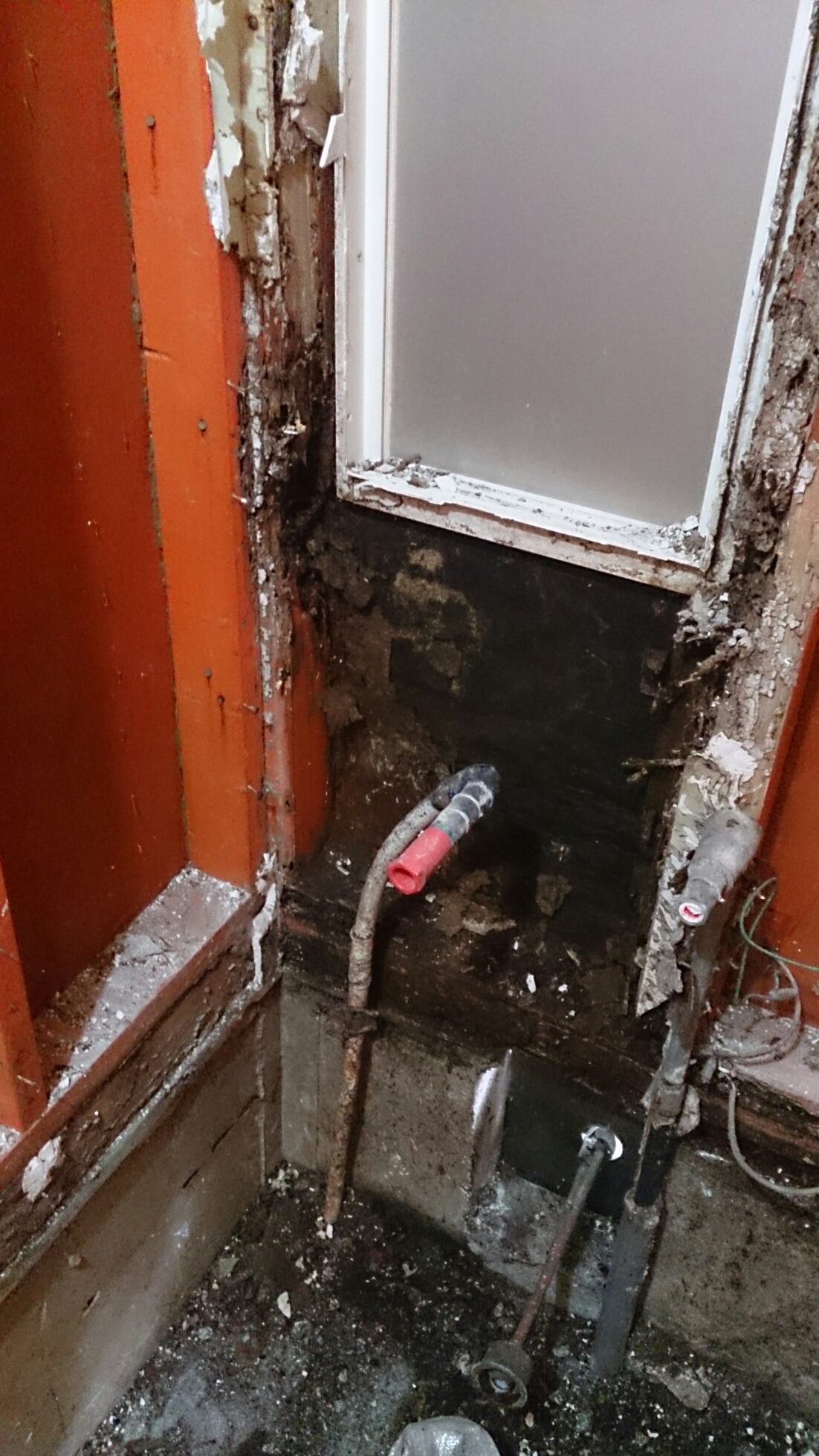 在来浴室を、解体したら、そこには白蟻たちの住みかが、残念ながら柱等の木材は、食べられてボロボロになっていました。