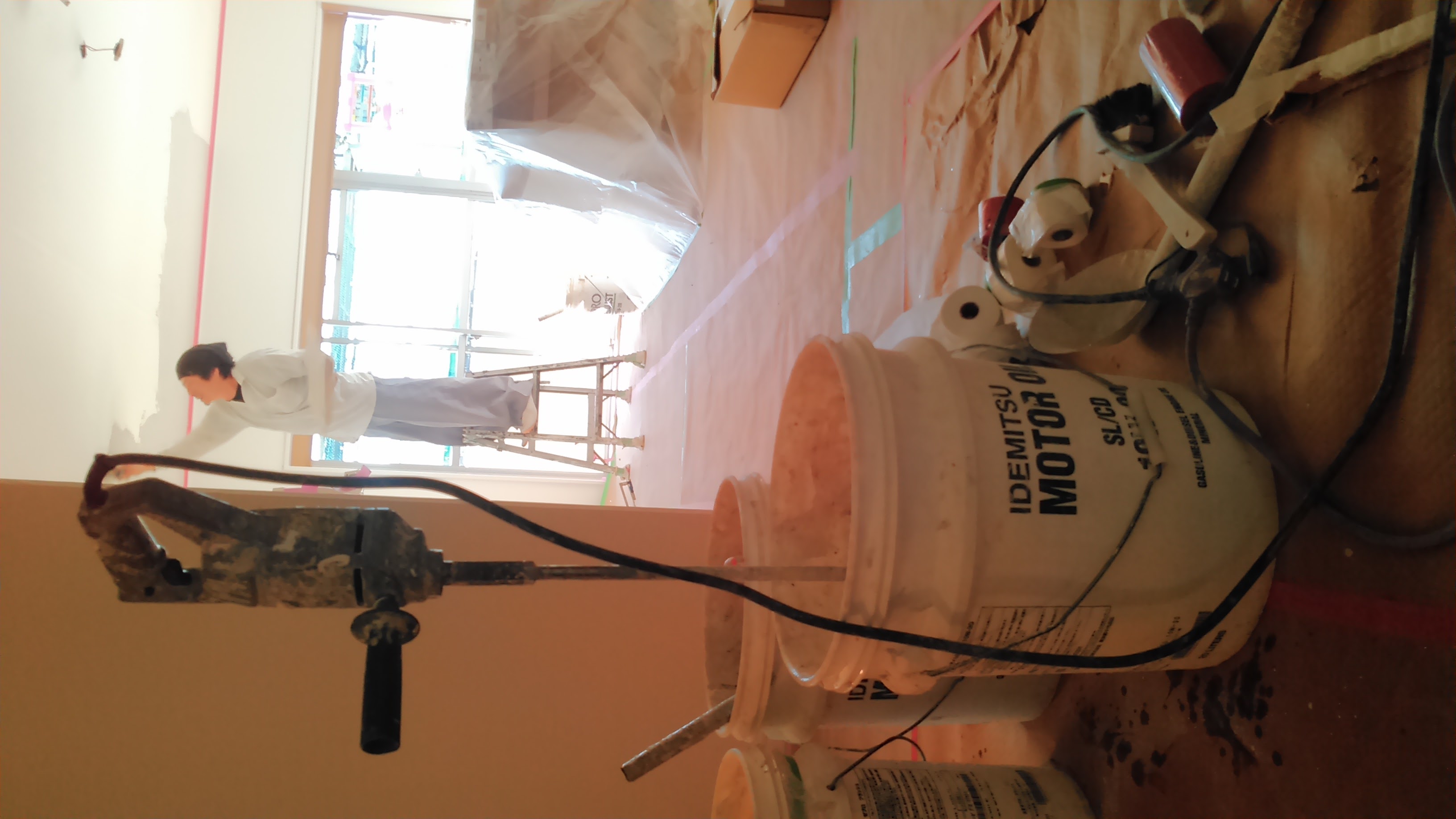珪藻土施工中 下地に竹クロスを使えば 塗りだけで1日70㎡くらいいきます!