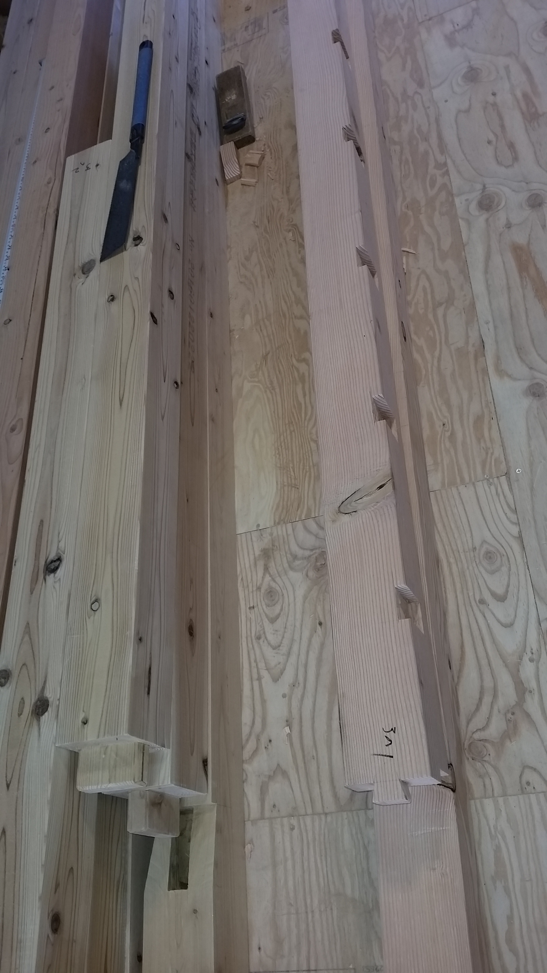 小さな増築の為、大工さんが現場で加工しています。