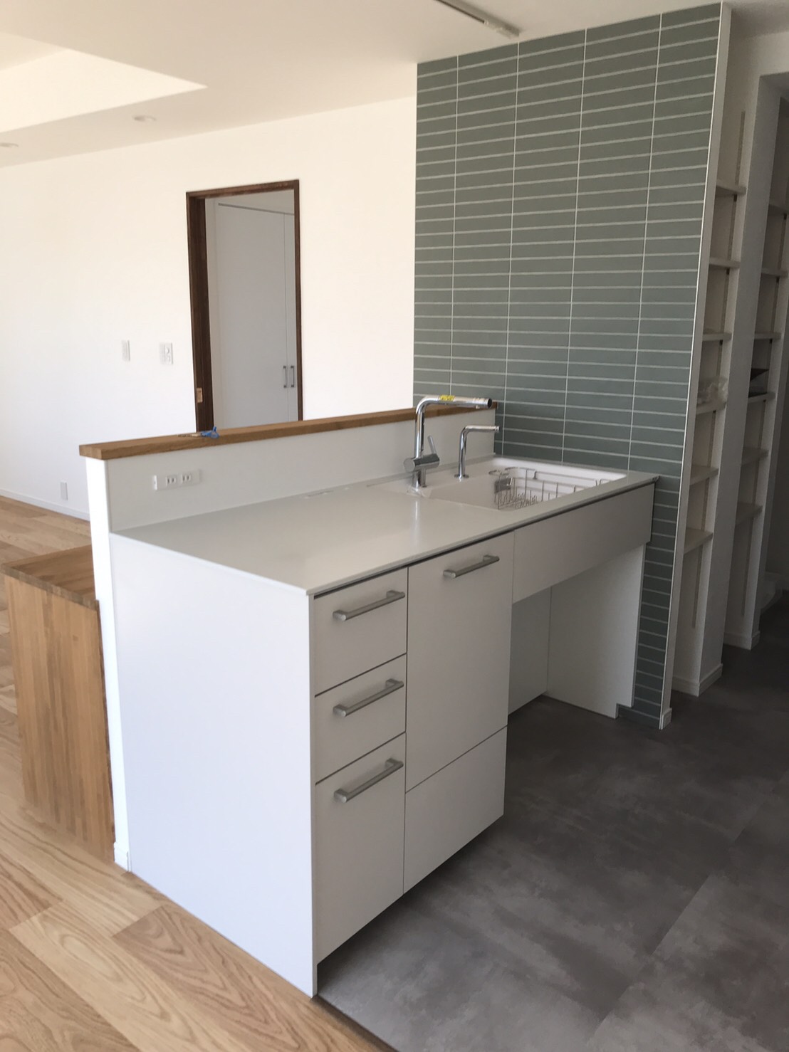 こんにちわ。 進行中のお家で、キッチンの取付が完了しました。 シンクがリビング側を向いているので、 小さなお子様がいても、安心して洗い物ができます。...