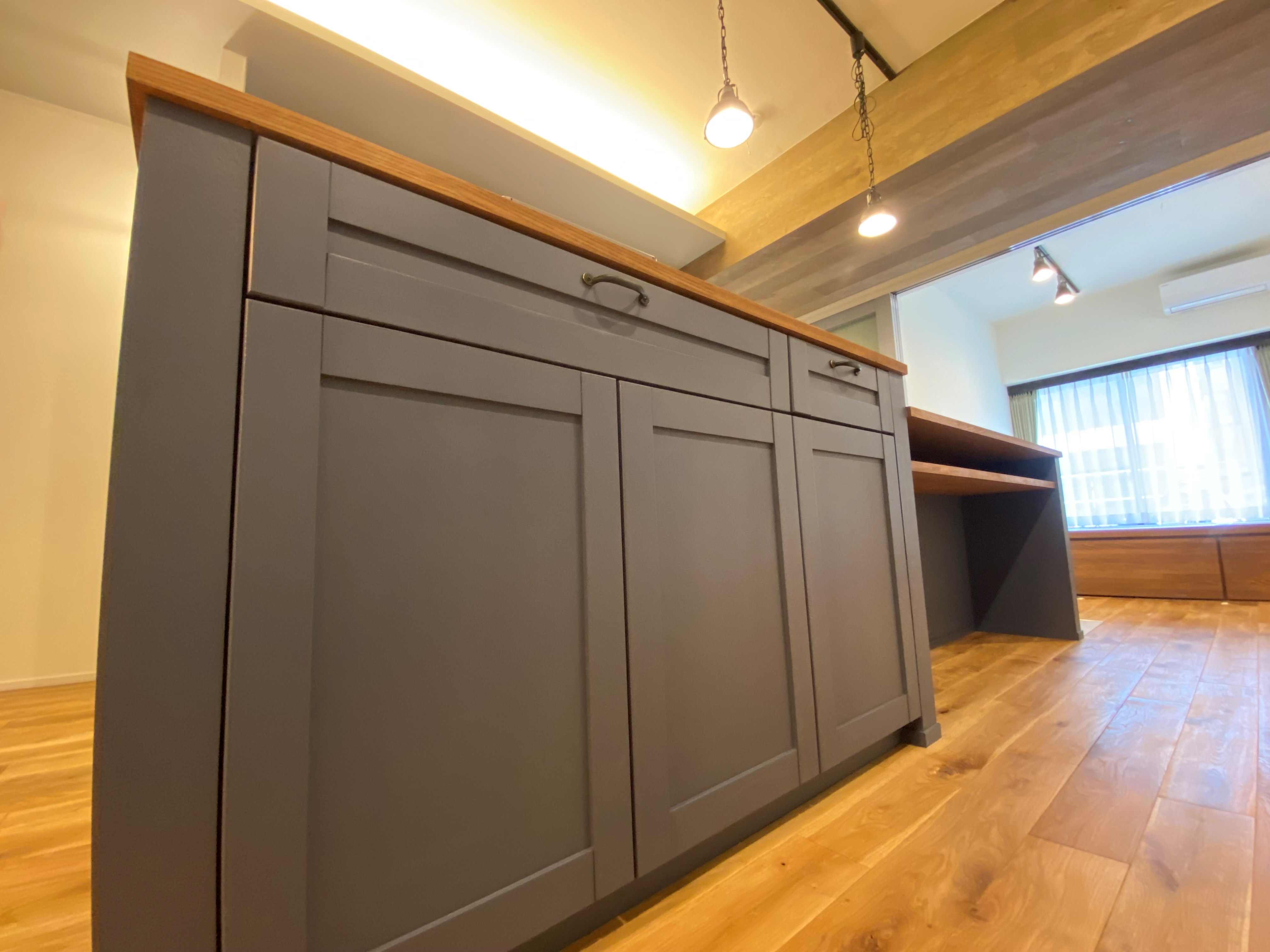 ダイニングテーブルと一体の食器棚を造作しましたよ!