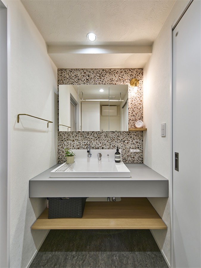 洗面台廻りをタイルで仕上げましたよ♪