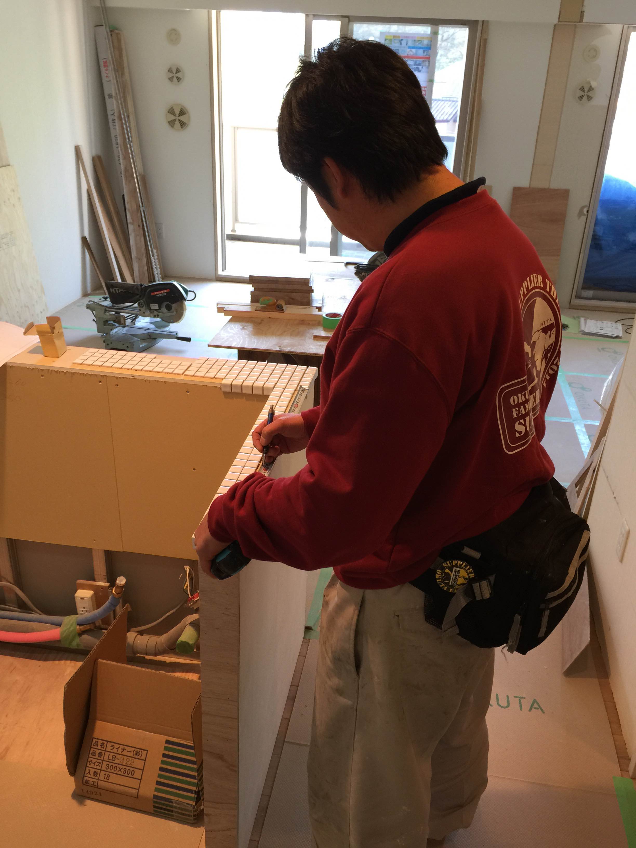 タイルを張る前には必ずタイル割りの確認をし下地の調整に入ります☆
