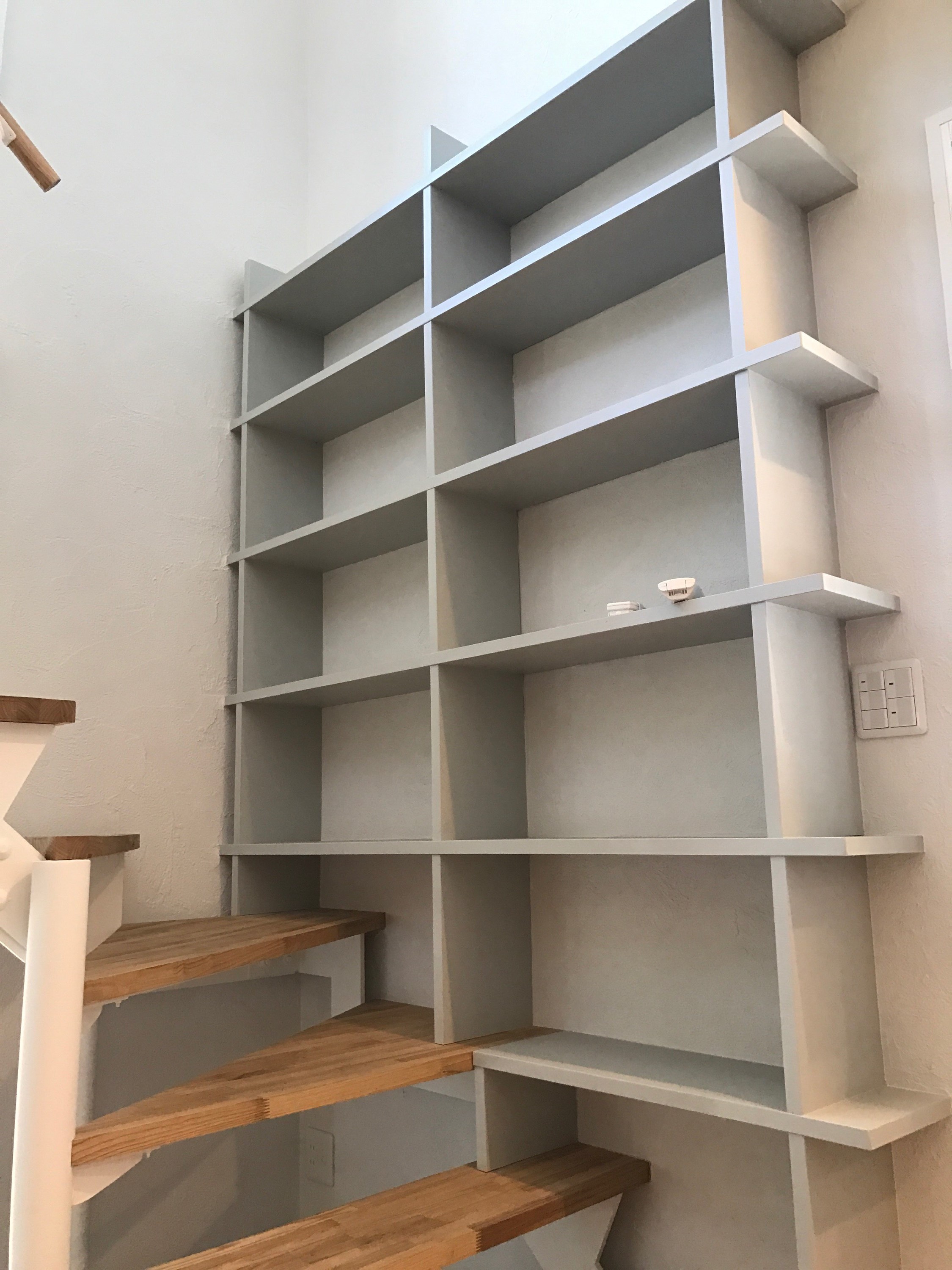 棚を組んでから固定出来ないので1段1段組み上げて造っています☆☆