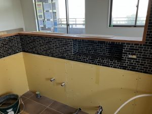 こんにちは 施工監理部城野です。 先日施工した現場の写真です。 キッチンの前に腰壁を造作し、仕上げはタイルなのですが壁を一部凹ませニッチにしております。 小さな調味料や小物置きにも最適です。 現場側は下地の段階でタイルの割付を...