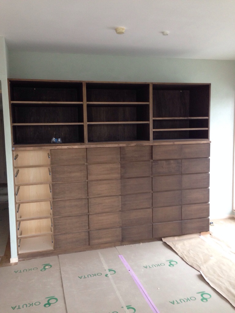 クリーニング前の現場です。 内装材は弊社オリジナル珪藻土 壁面には造作家具 照明はルイスポールセンです。