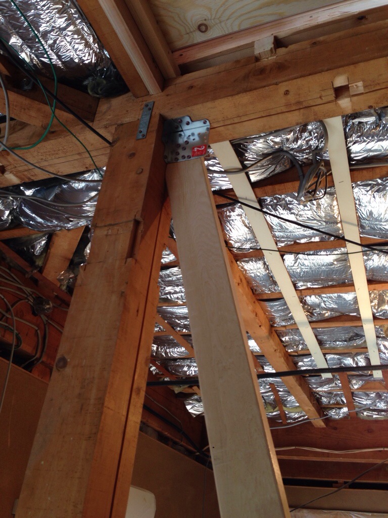 構造補強のため筋交いを取り付けました。上下に筋交い金物も設置して地震から家族を守ります。