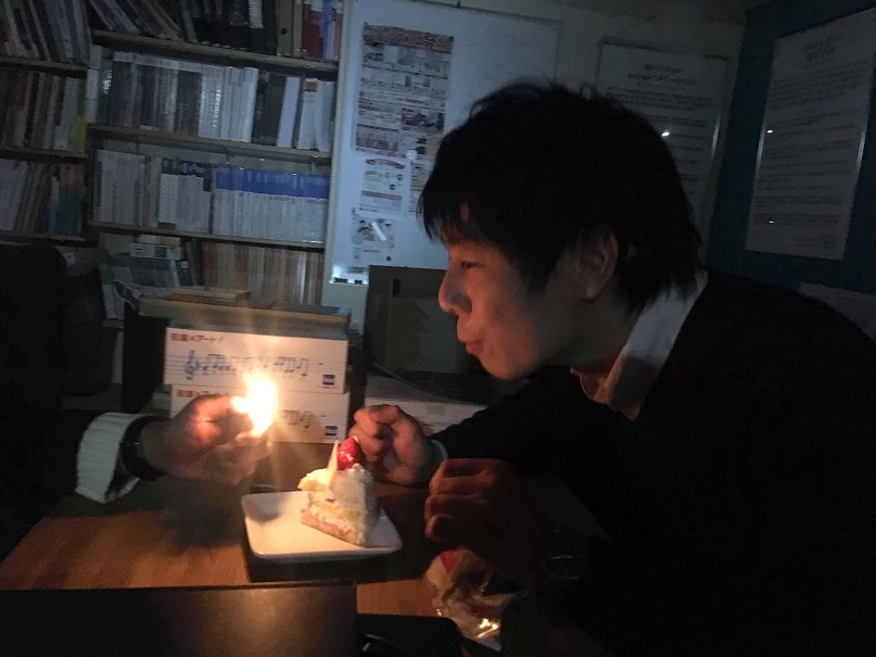 した写真は先週誕生日を迎えたOKUTA社員の小泉本部長と平田社員です。