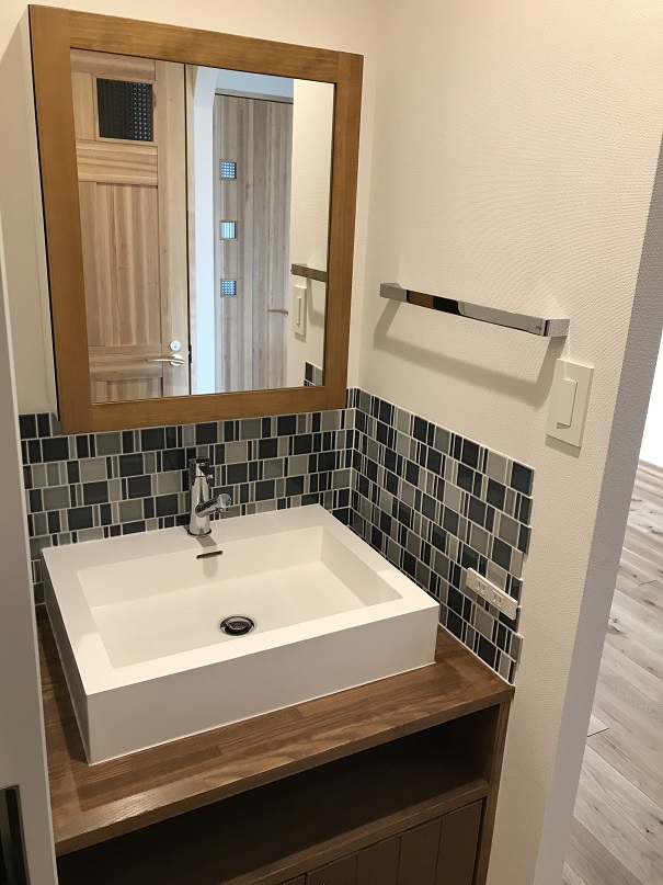 無垢カウンター材で造作洗面化粧台をつくりました!