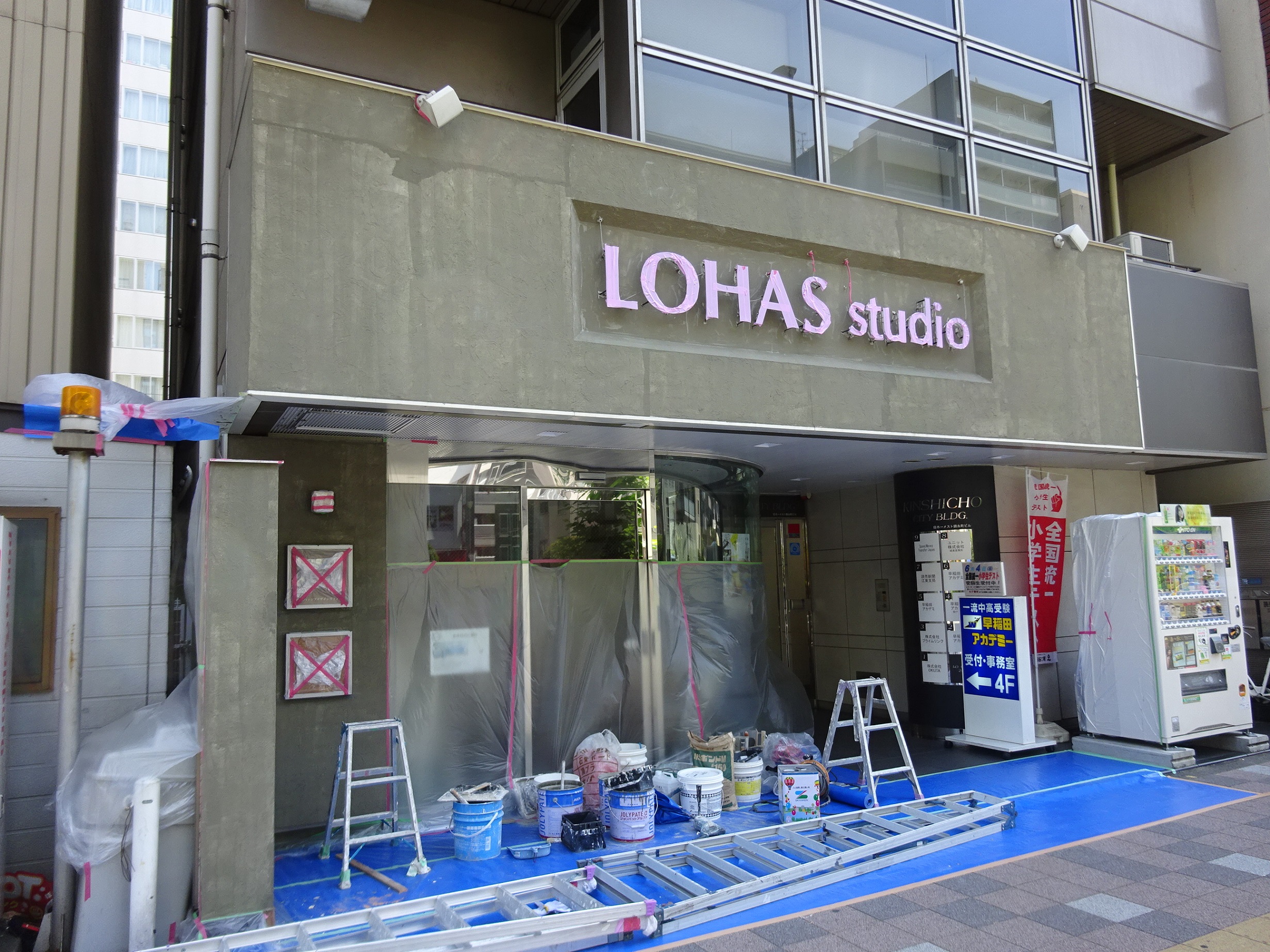 錦糸町店の正面外壁のジョリパットを塗り直しました。