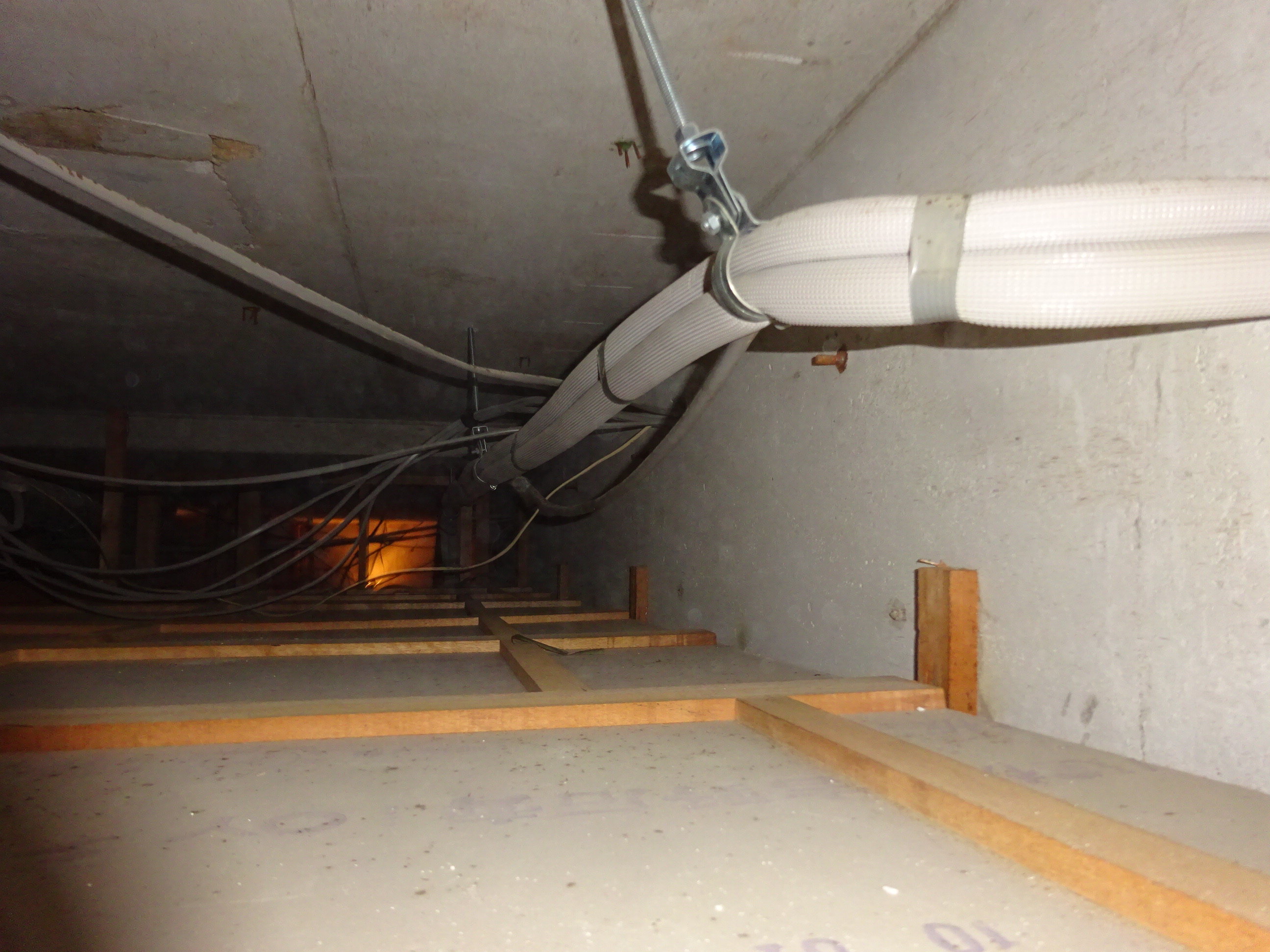 天井内には、電線やキッチンの排気ダクト、換気扇のダクトなどが通っており、