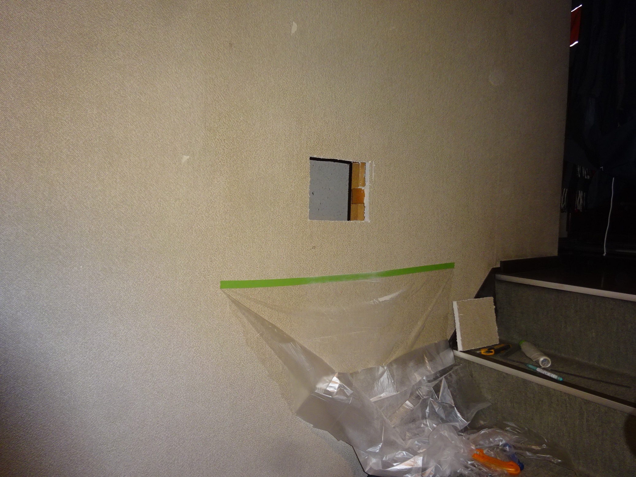 階段廻りの壁に空間があるか開口調査をすることになりました。