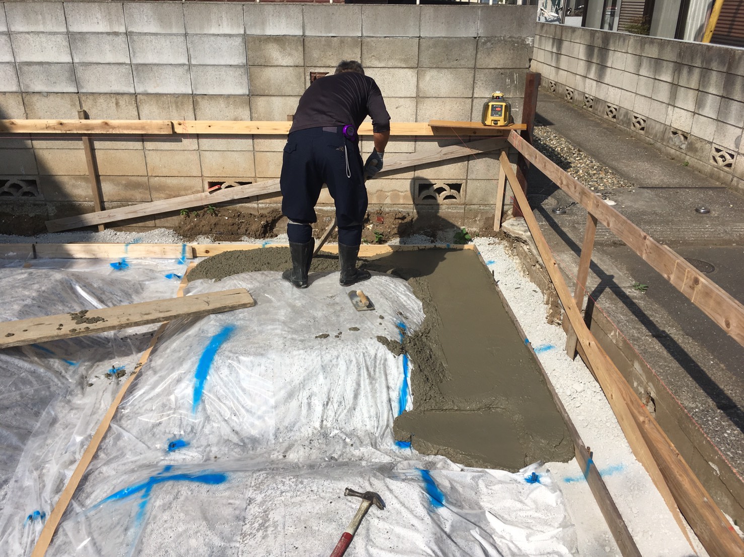 H邸です。 新築の基礎工事が始まりました。 捨てコンを打設している状況です。