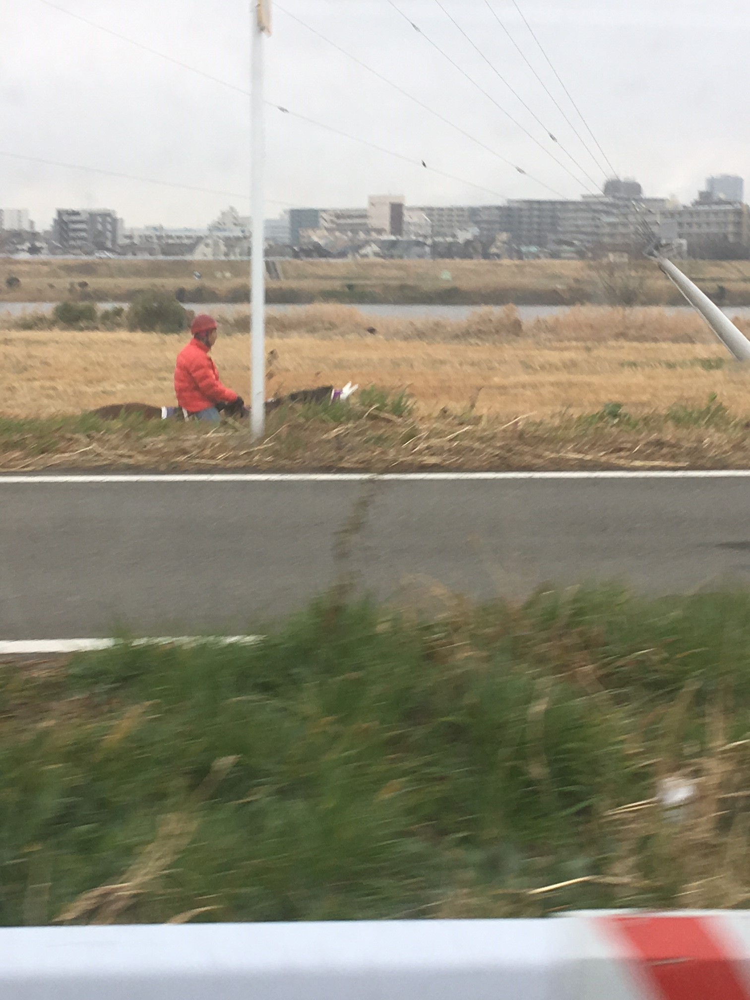 川崎に向かう河川敷沿いで、朝早くから馬も白い息を吐きながら活動してるのをみて