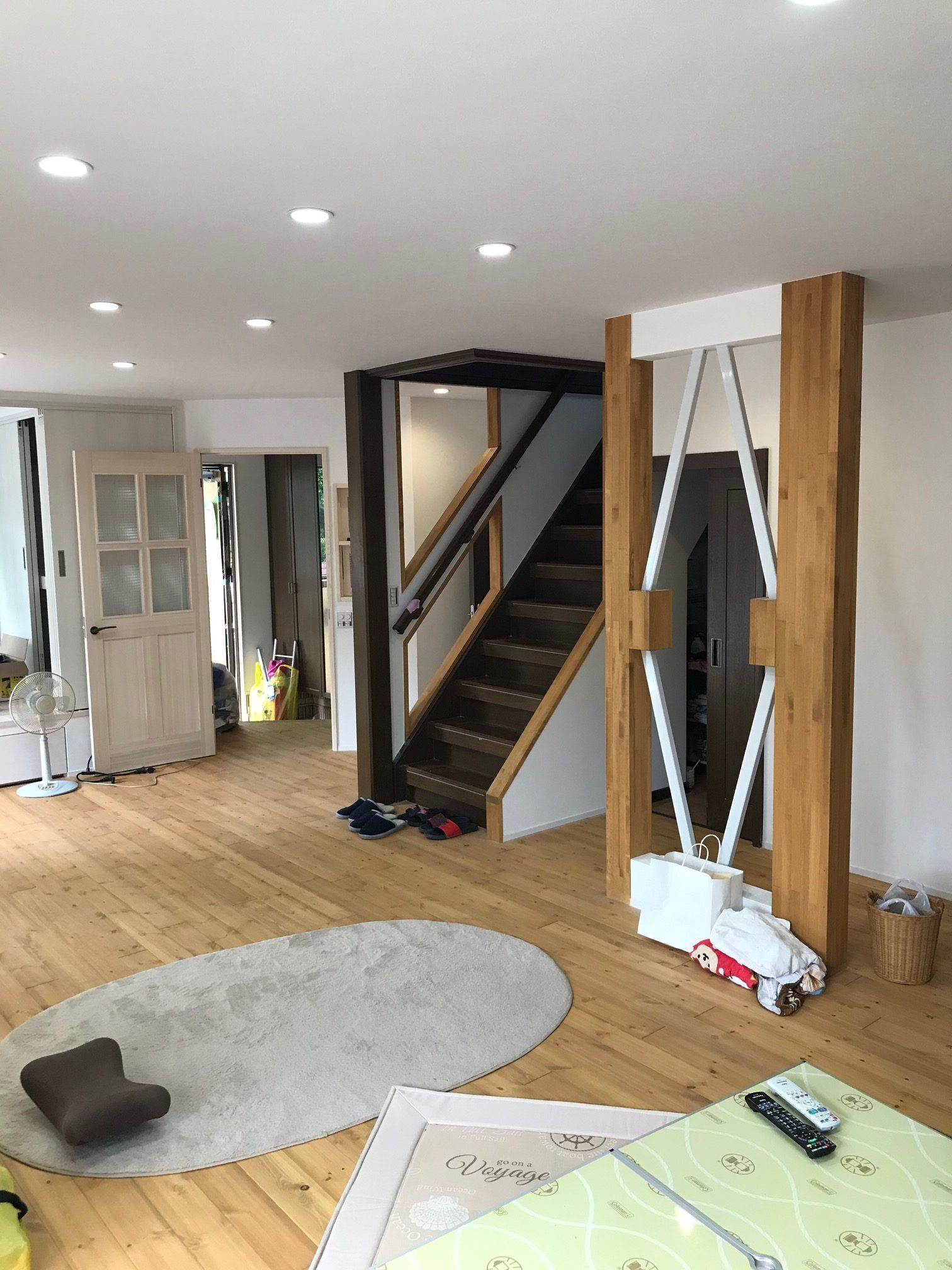 写真真ん中に見えている鉄骨構造材を取っ払う事が出来ない為、