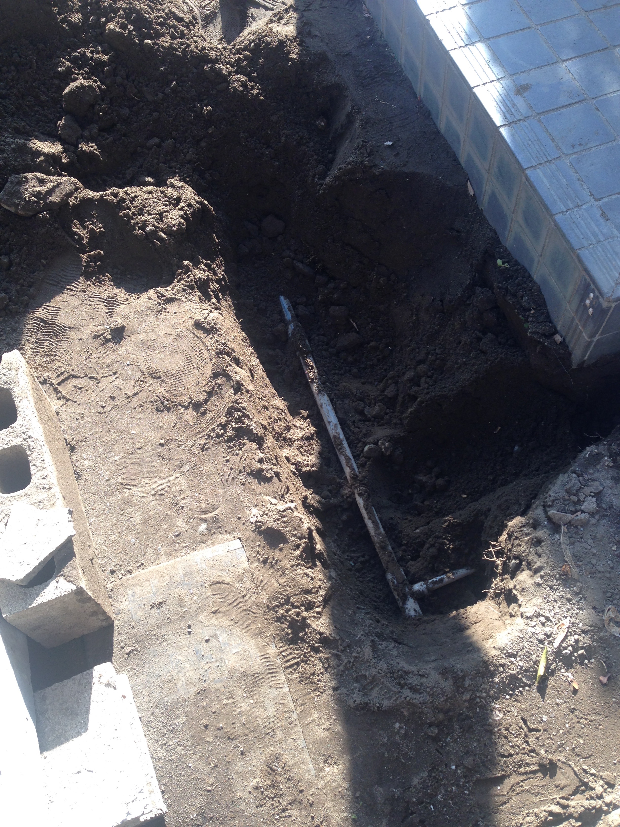 こんにちは。 キッチンの改修工事に伴って宅内の給水給湯配管を新しくすることに。。。 穴を掘り続け、、、見つけました!!