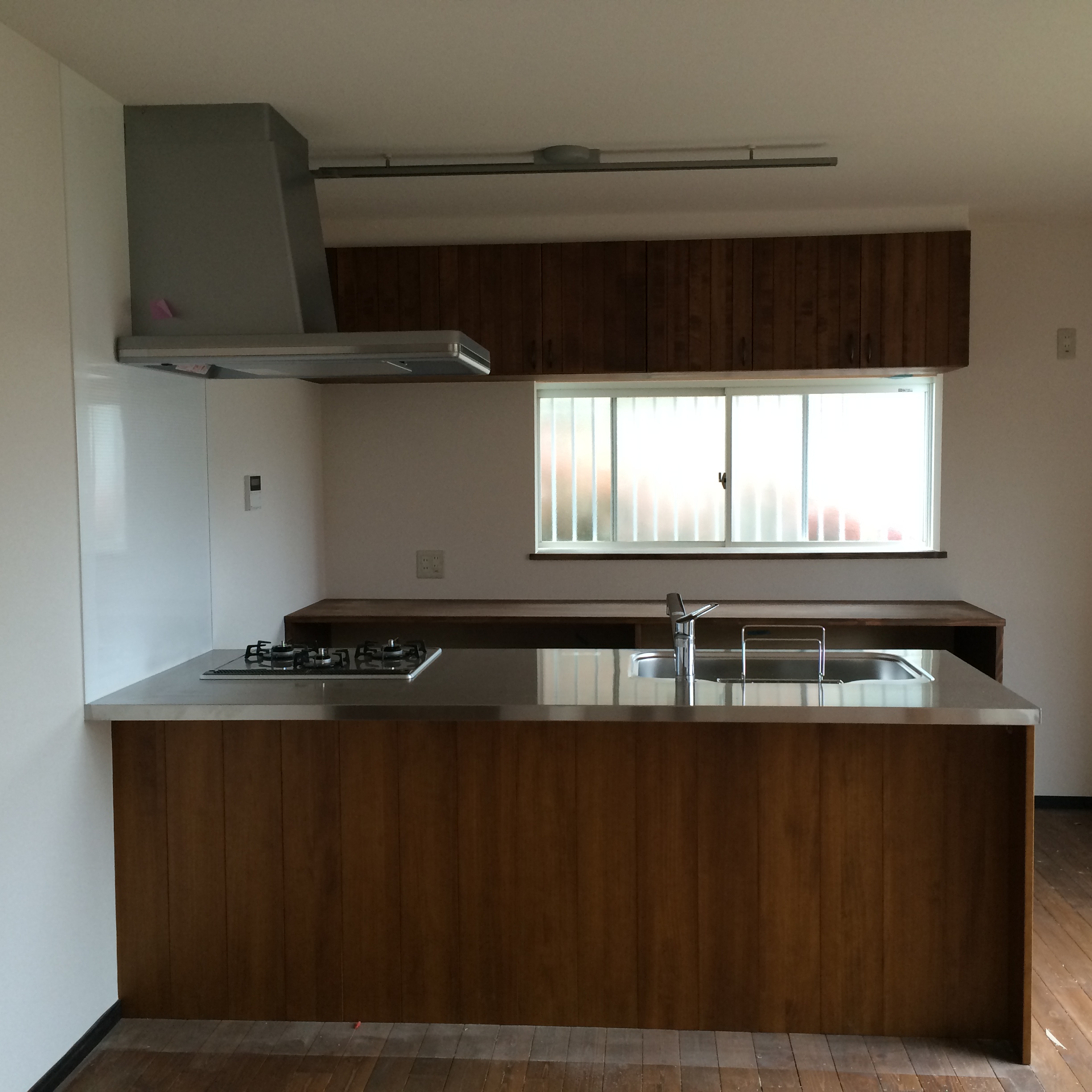 既存キッチンがあった場所は、収納棚+吊戸棚がついて収納力UP!!