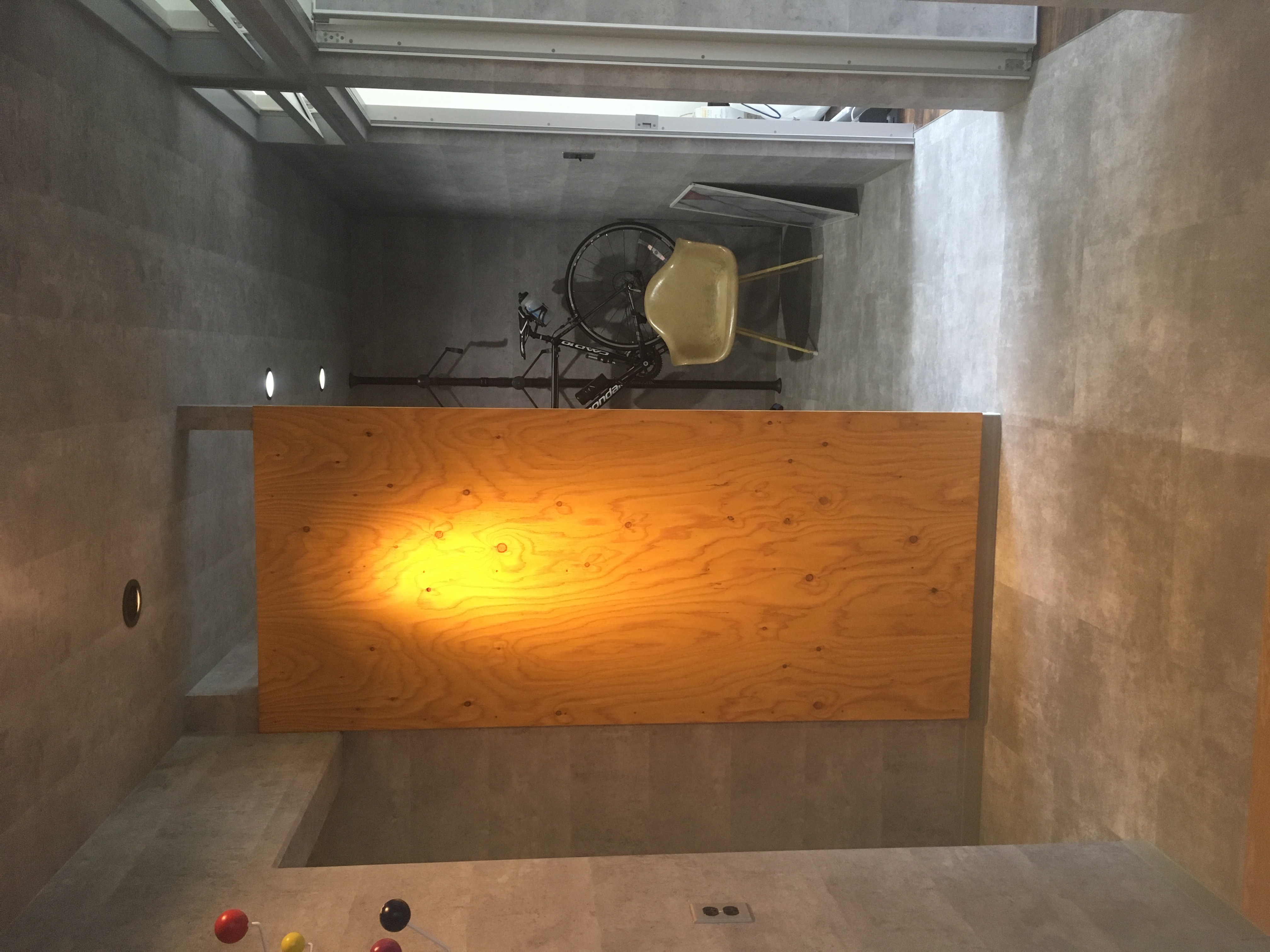 周りの壁はコンクリート打ち放しに見えますが、これ壁紙なんです。