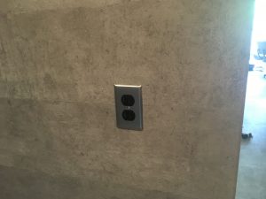 お部屋の雰囲気に合わせてコンセントもステンレスのメタル調に変えました。