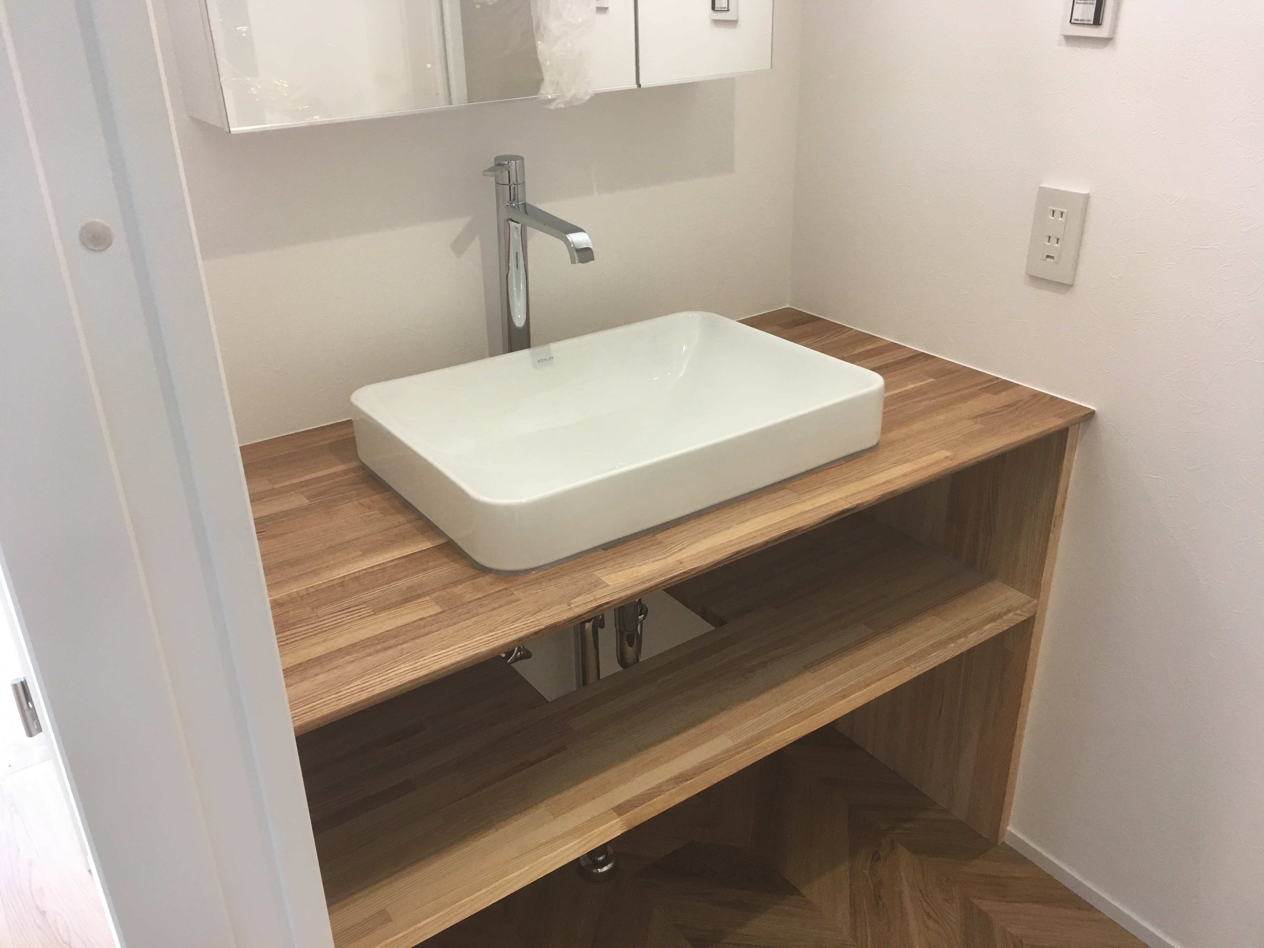 この部分にカウンターと洗面ボウルをのせて完成しました。